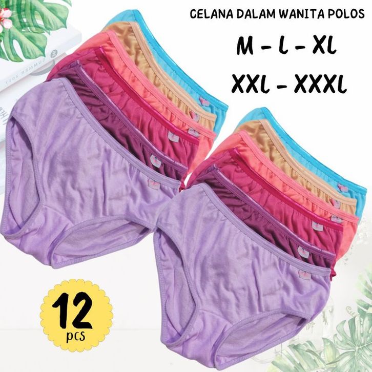 12 Pcs 1 LUSIN Celana Dalam Wanita Polos Halus Lembut Nyaman Dipakai Undies Wanita 1 Lusin Grosir CD Wanita Polos