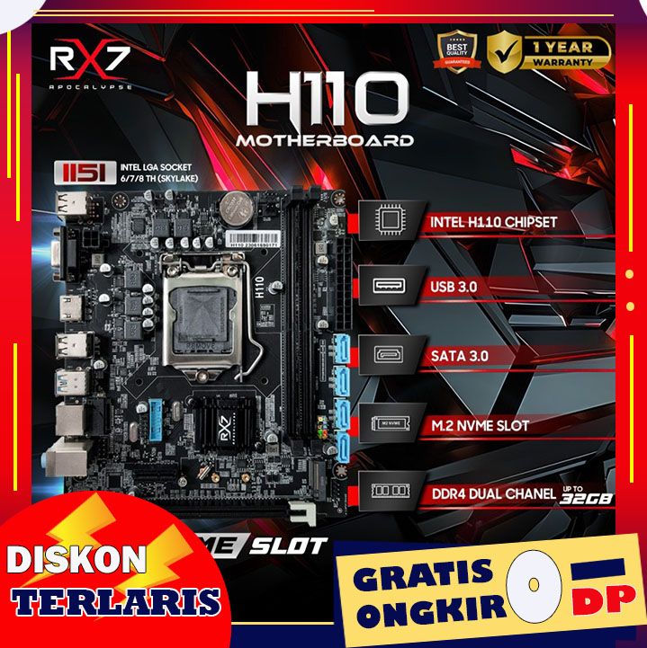 ORIGINAL MOTHERBOARD RX7 H110 SOCKET LGA 1151 DDR4 MAINBOARD H110 INTEL