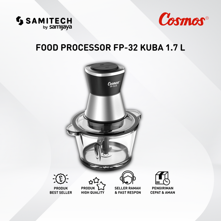 Cosmos Food Processor FP-32 Kuba (Kupas Bawang) 1.7 L Kaca Bergaransi - Food Processor Cosmos dengan Fitur Kupas Bawang