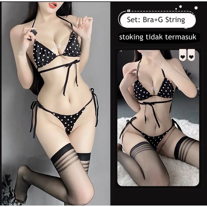 Lingerie Sexy Hot Open G String Ukuran Jumbo tali Deep V Bra Set Lingerie B022-A
