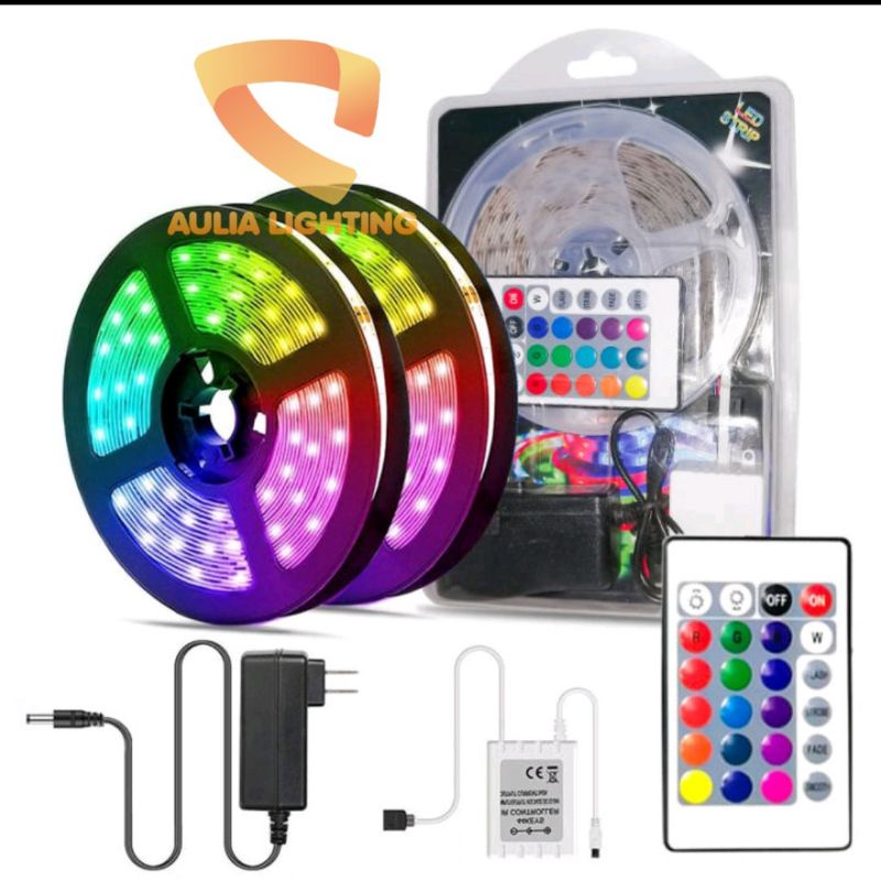 PAKET LAMPU LED STRIP RGB 5M 10M WARNA WARNI DISCO HIAS KAMAR TIDUR DINDING REMOTE + ADAPTOR 5 10 METER