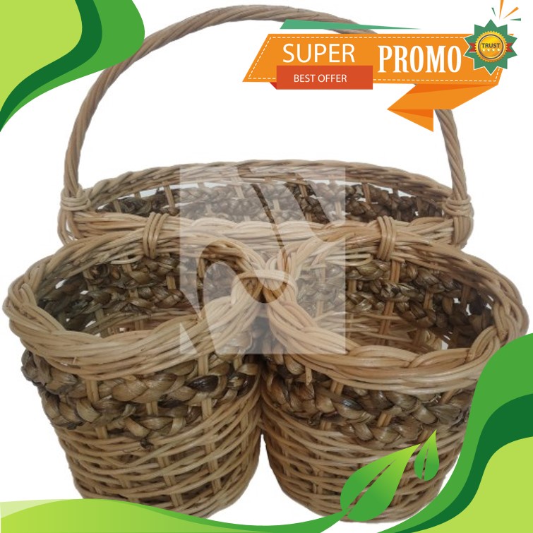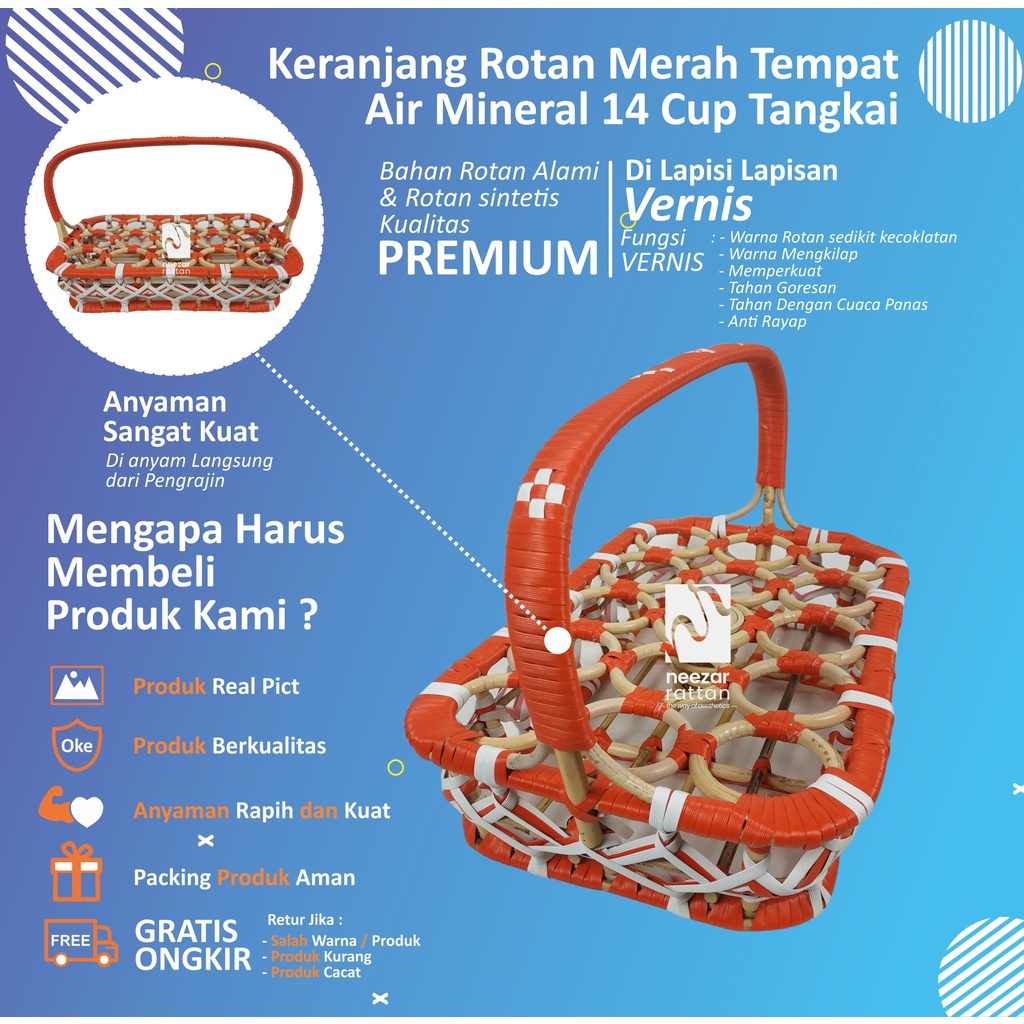 KERANJANG TEMPAT AQUA GELAS AIR MINERAL ROTAN ALAMI SINTETIS 14 CUP