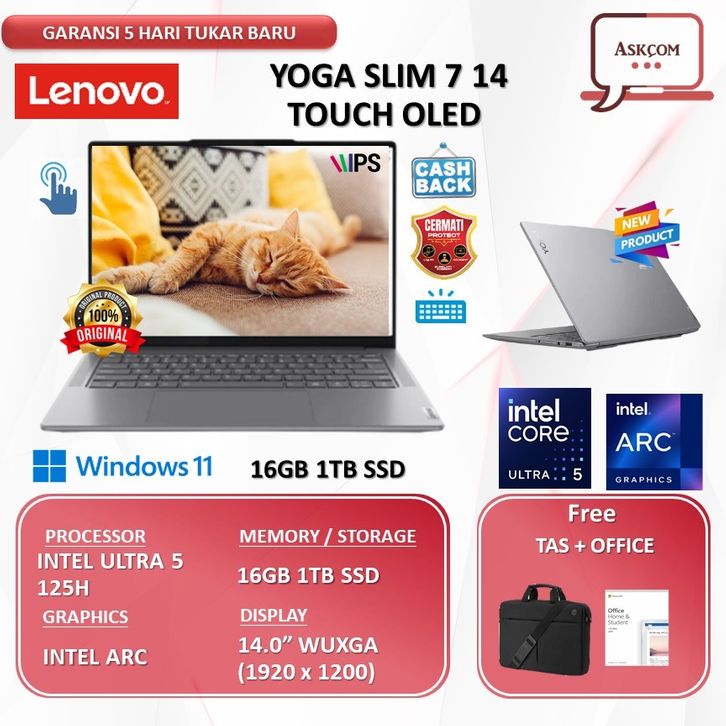 Laptop Lenovo Yoga Slim 7 14 Touch Oled Ultra 5 125H 16GB 1TB SSD W11 OHS21 14.0WUXGA EVO 8GID