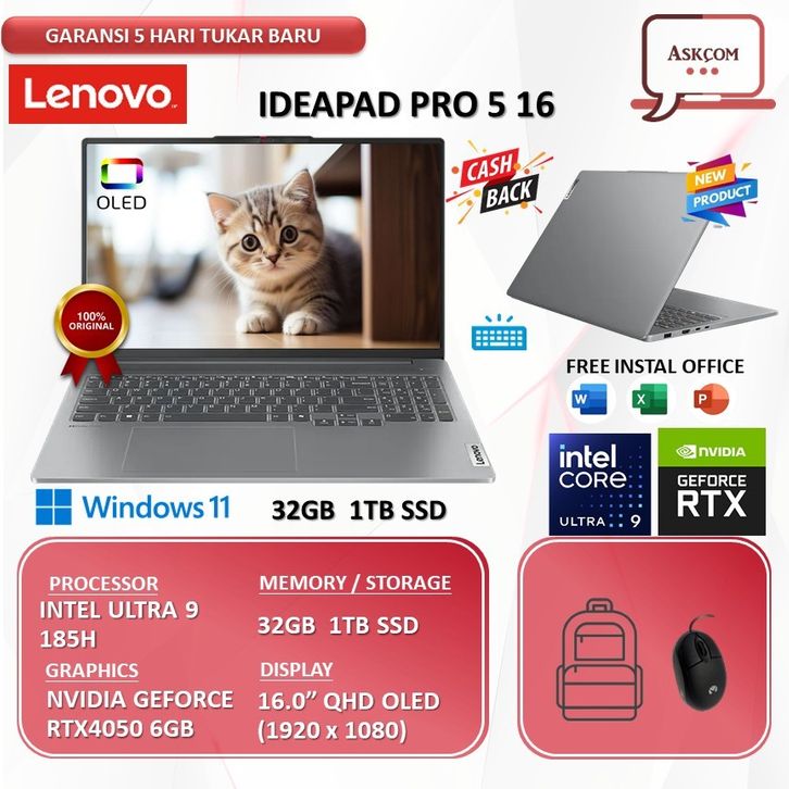 Laptop Lenovo Ideapad Pro 5 16 Oled Touch Ultra 9 185H RTX4050 6GB | 32GB 1TB SSD W11 16.0QHD