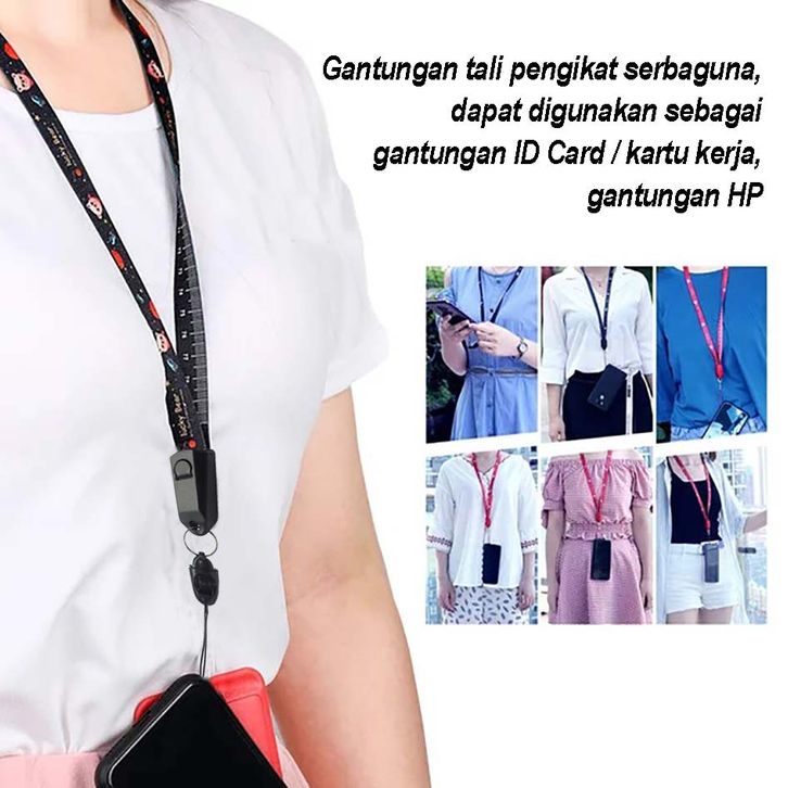 Lanyard Kabel Data Charger + Meteran Gantungan Tali Leher untuk ID Card Kartu Kerja HP Kunci / USB Cable