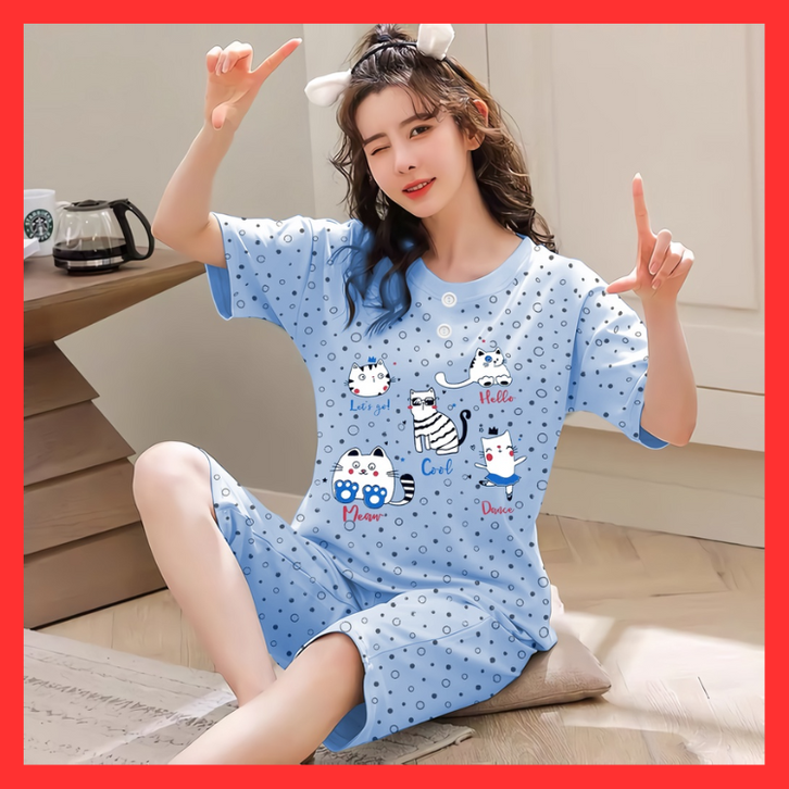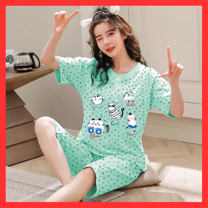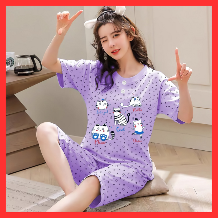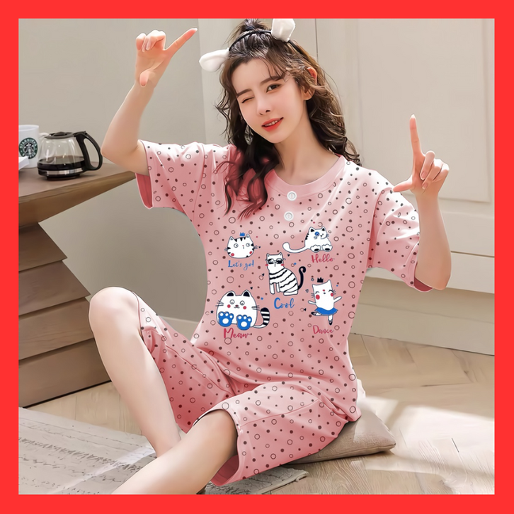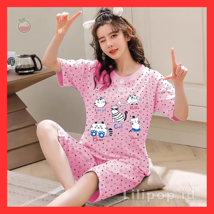 [Star] Baju Tidur Wanita Stelan Celana 3/4 Dewasa Labubu Full Print All Size Standar Bahan Kaos Set Piyama Korean Style