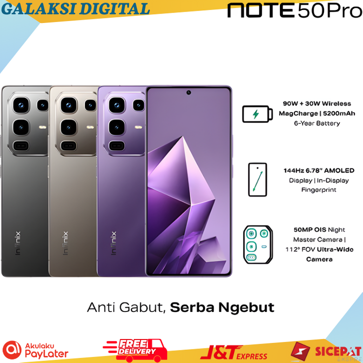 Infinix Note 50 Pro 8/256GB Up to 16GB Extended RAM Helio G100 Ultimate 6.78” FHD+ Amoled 50MP OIS - 5200 mAh NFC