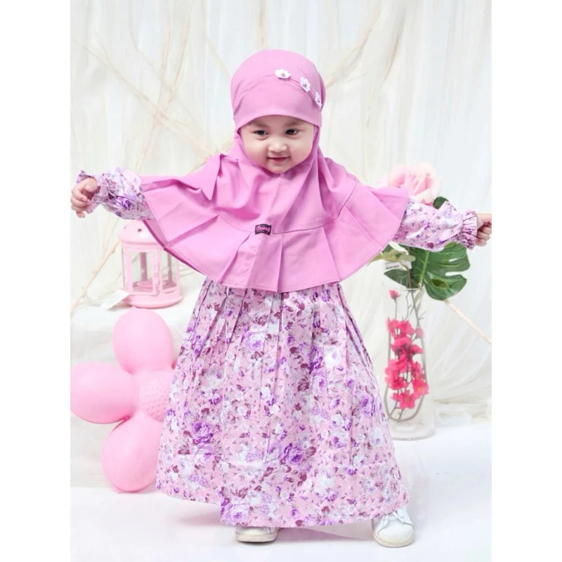 Salsabilla Gamis Anak Katun Jepang Baju Muslim bayi Perempuan Shabby Chic Set JILBAB BUNGA