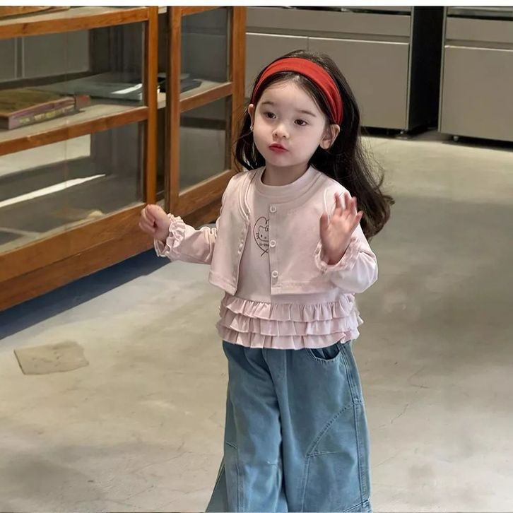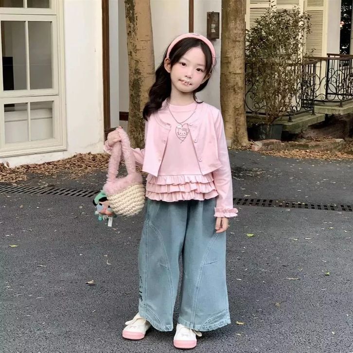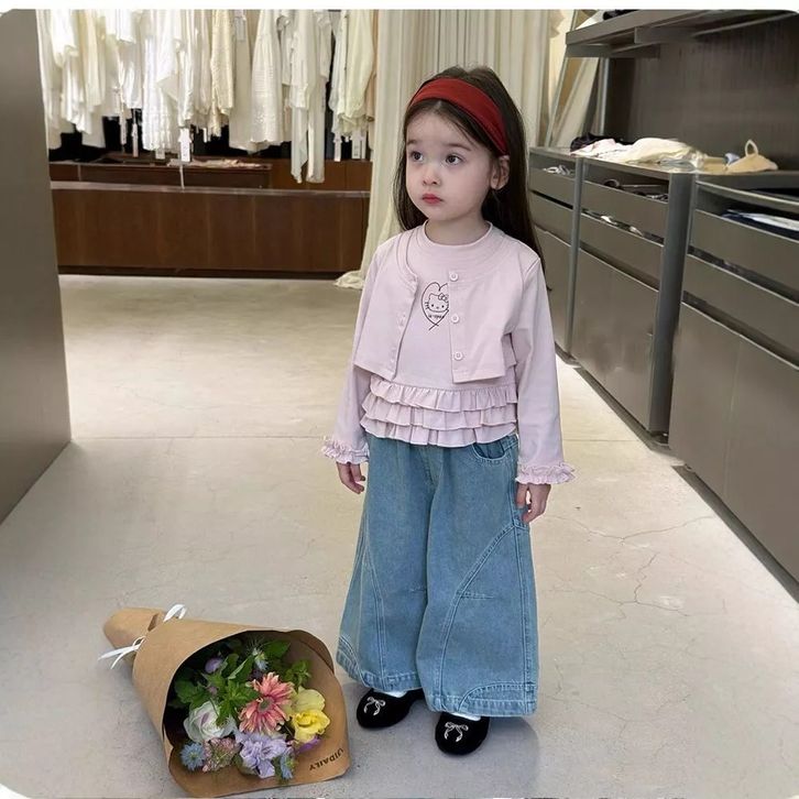 Setelan Jeans Anak Perempuan One Set Anak Cewek Atasan Lengan Panjang + Celana Kulto Jeans