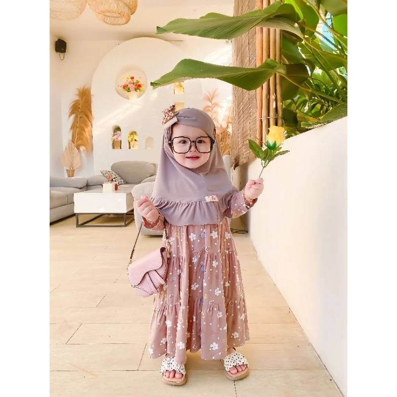 gamis dan jilbab Bunga Rayon 1-2 tahun, SET