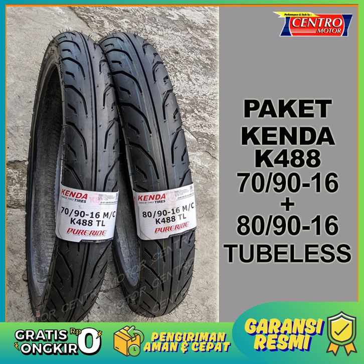 BARU+ORI KENDA K488 70/90-16+80/90-16.PAKET 2PC BAN TUBELESS NOUVO/SKYWAVE.AWET,GRIP MAXIMAL