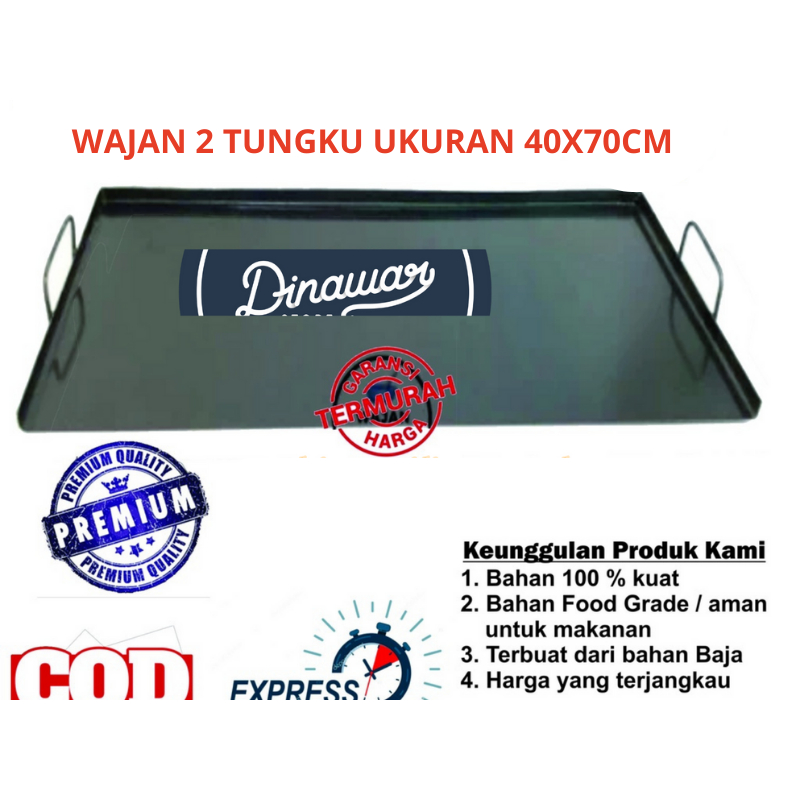 WAJAN KEBAB DAN BURGER PERSEGI PANJANG 40X70CM 2 TUNGKU KOMPOR TEBAL 2,5MM