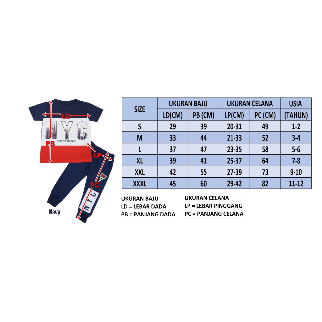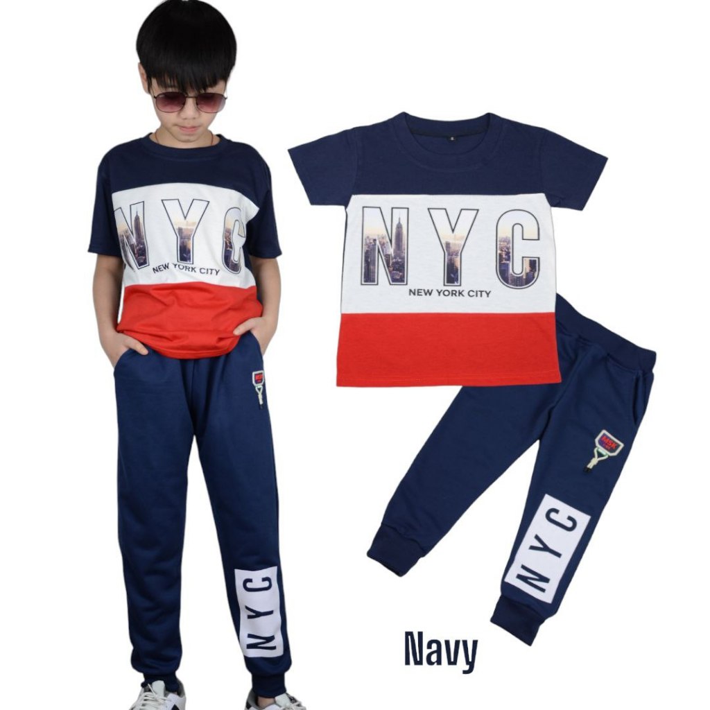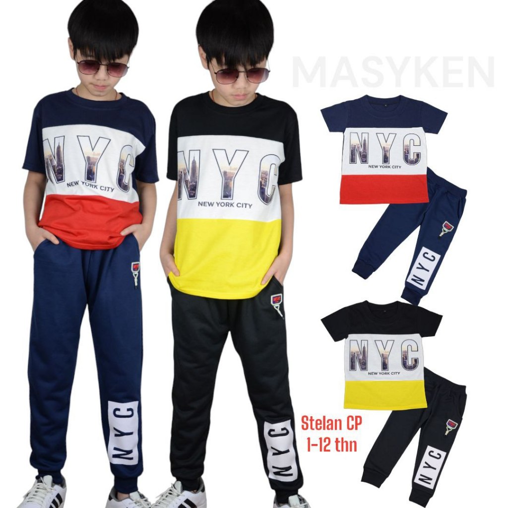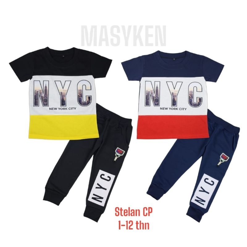 MASYKEN SETELAN TSHIRT CELANA PANJANG NYC ANAK LAKI LAKI USIA 1-12 THN STELAN BAJU ANAK
