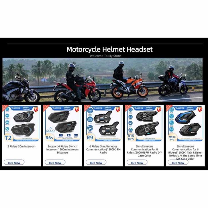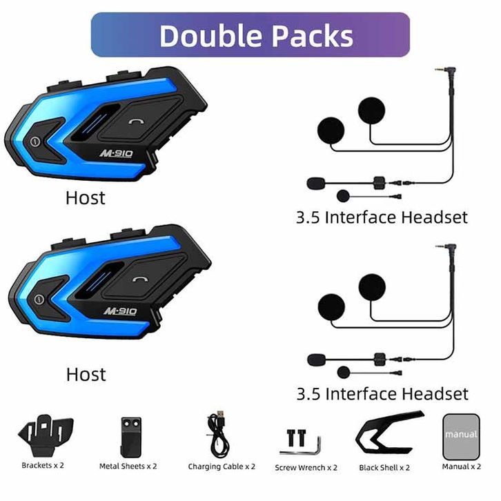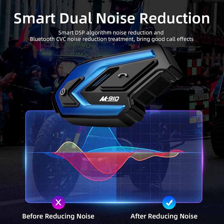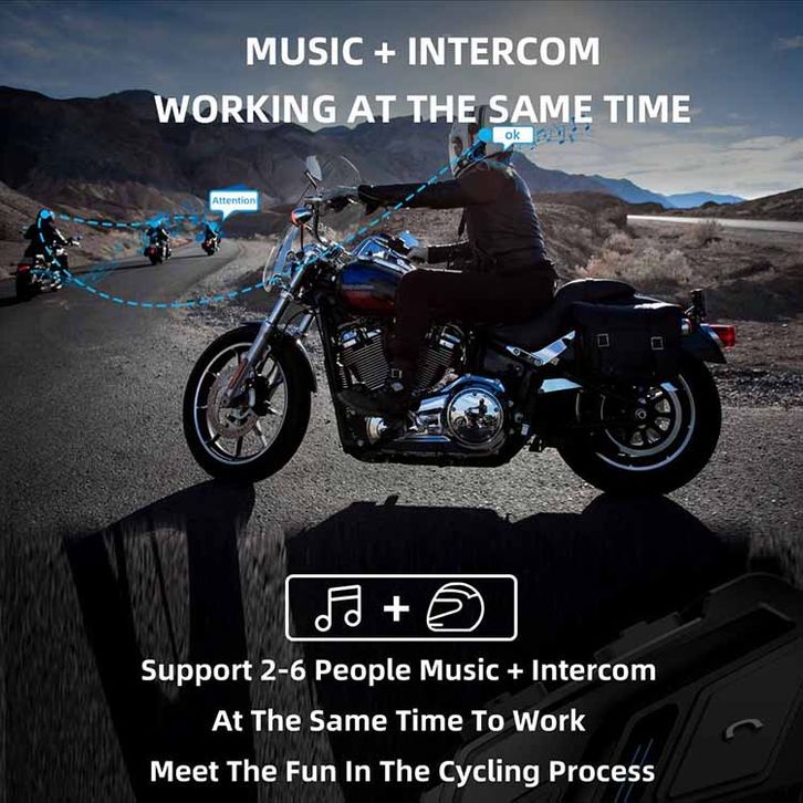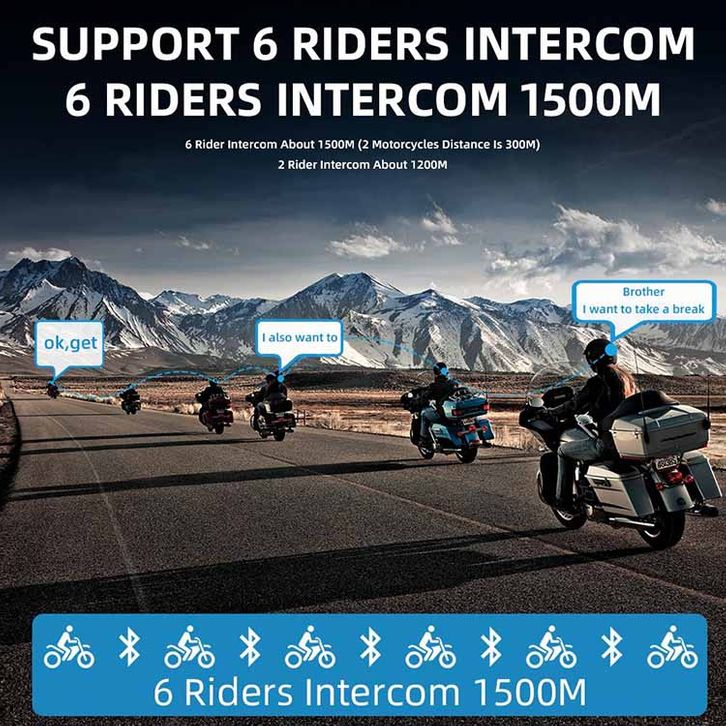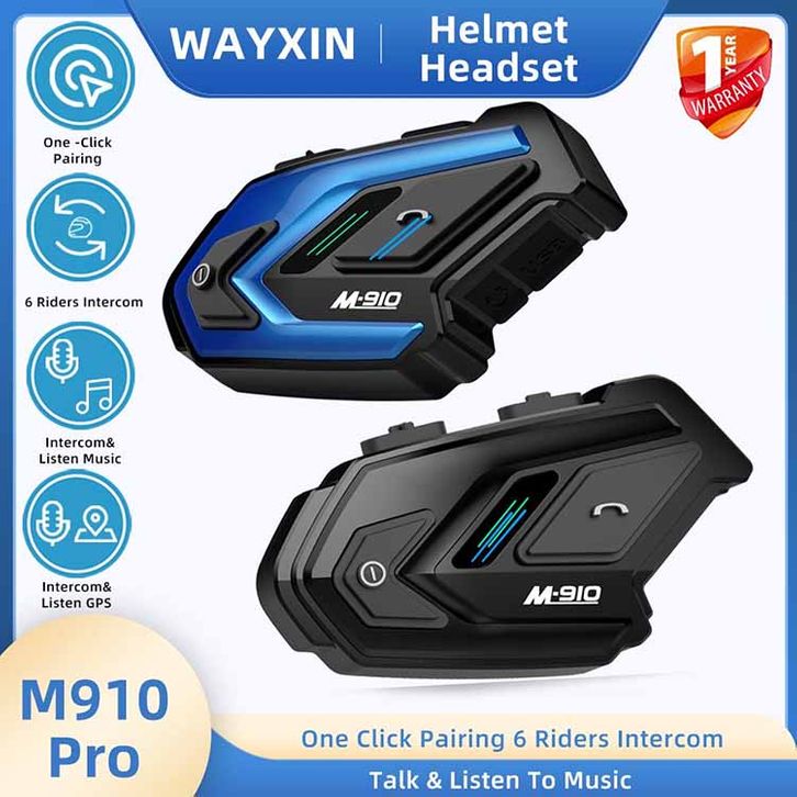 ZACRO Intercom Helm 6 Rider Headset Helm Sepeda Motor M910 Pro Interkom Tahan Air 6 Pengendara Pemasangan Satu Tombol