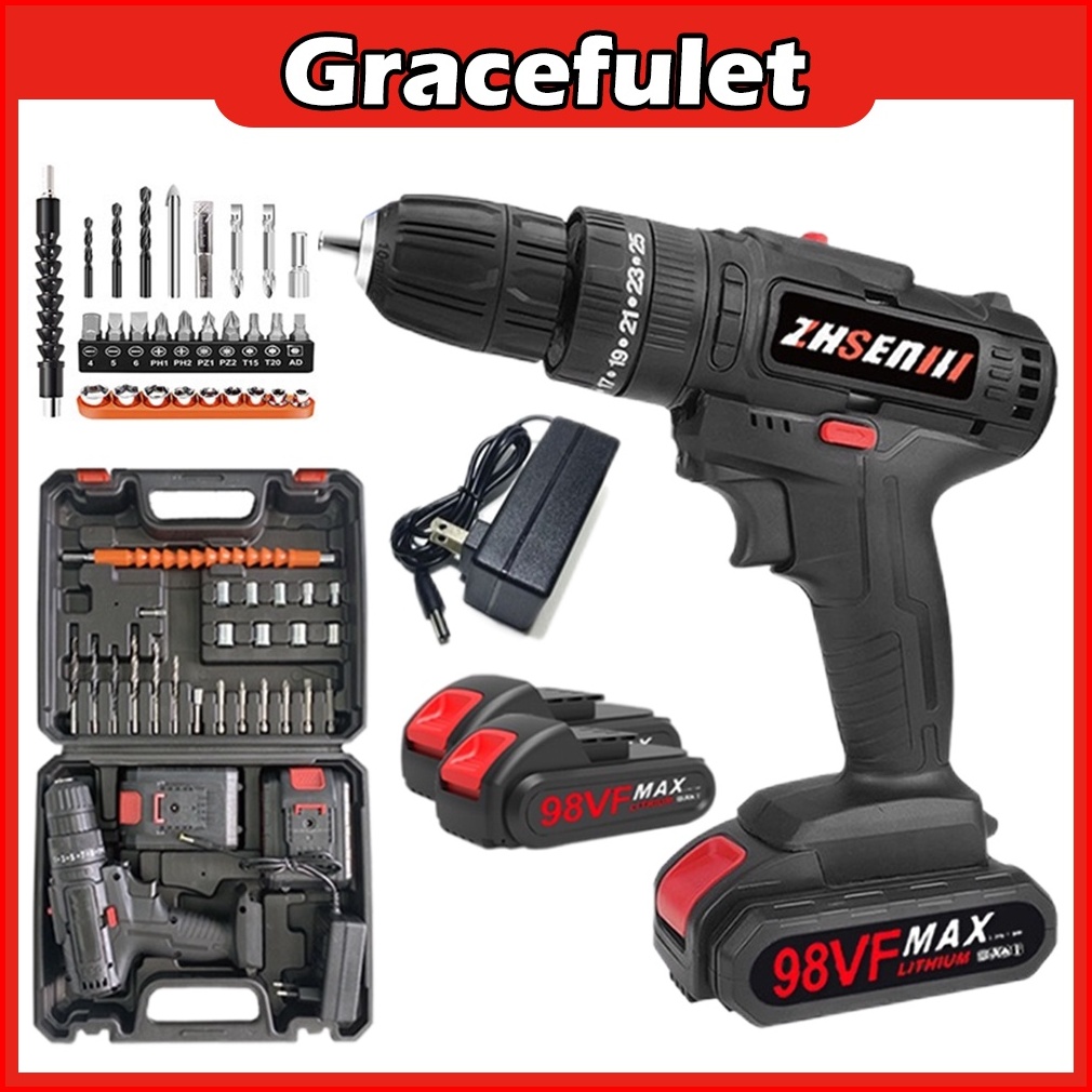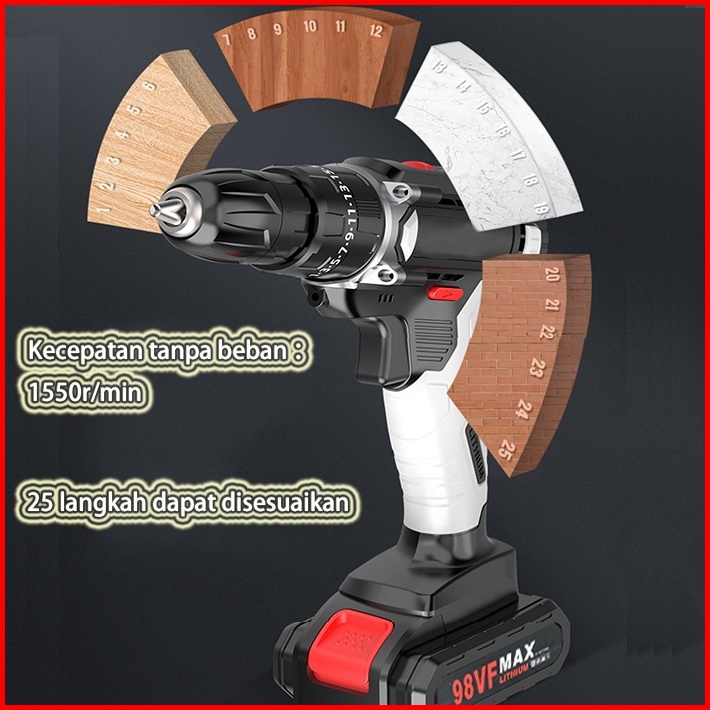 Bor Listrik Bor Baterai Bor Tanpa Kabel 98v Set Lengkap Mata Bor Cordless Drill Full Set Of Drill Bits Bor Mesin Elektri