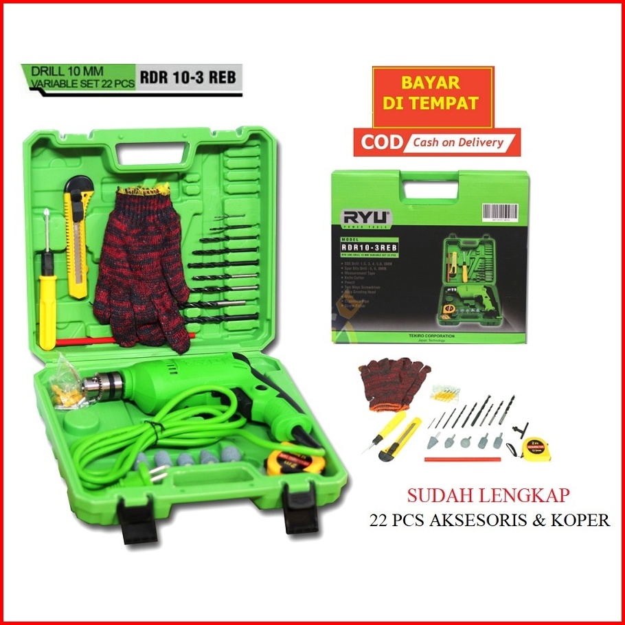 Ryu Mesin Bor 10mm Set 22pcs Koper Mesin Bor Listrik Orignal Termurah Bergaransi - Ff02