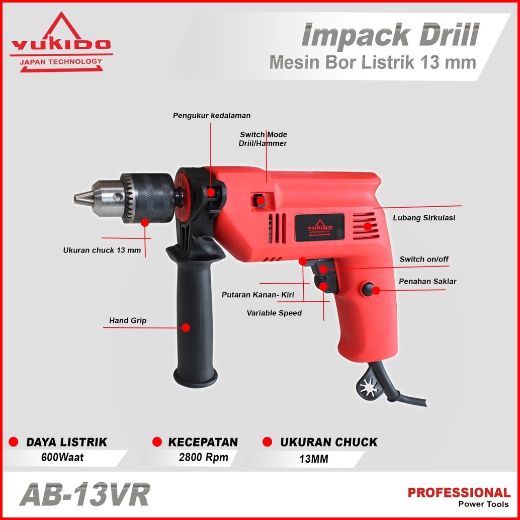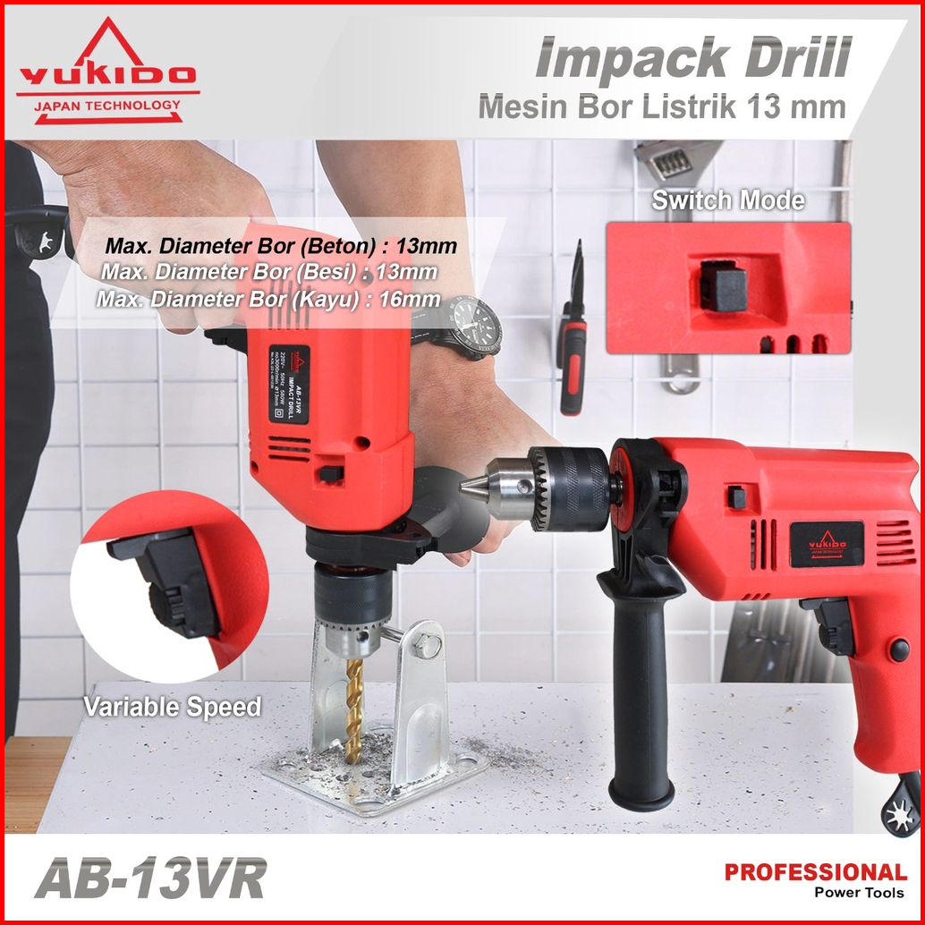 Promo Mesin Bor 13mm Bor Beton Kayu Besi Tembok Bor Listrik Impact Putaran Bolak Balik Full Tembaga Spt Jld J8013-s