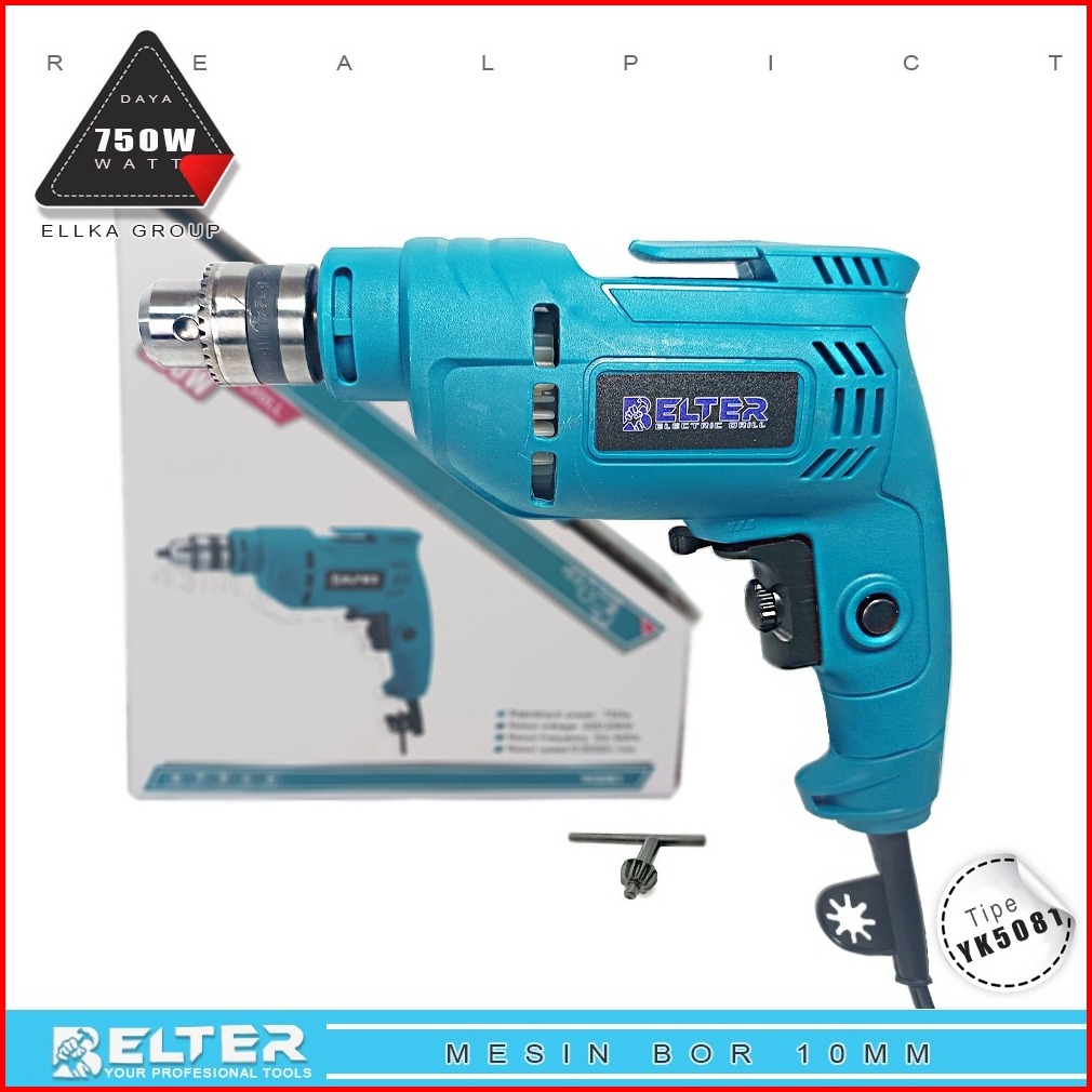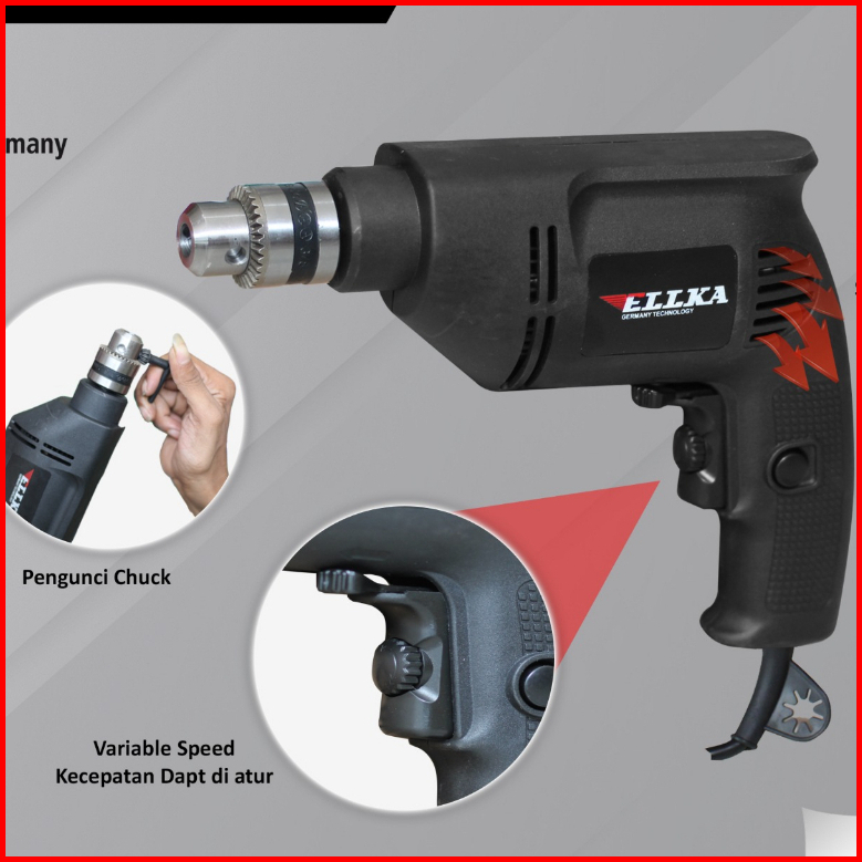 Bor Tangan Listrik Bolak-balik Variable Speed Electric Drill 10mm Ellka German Technology