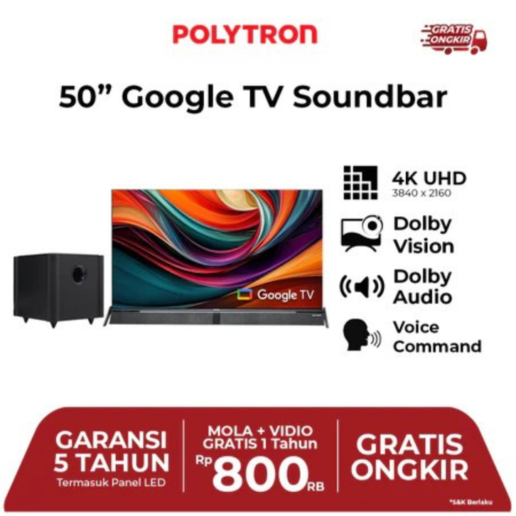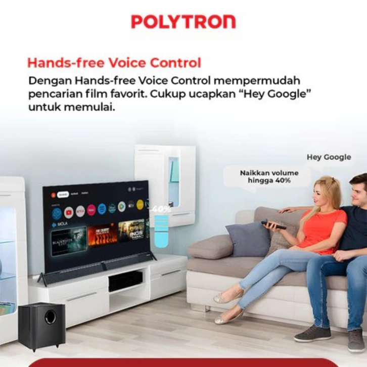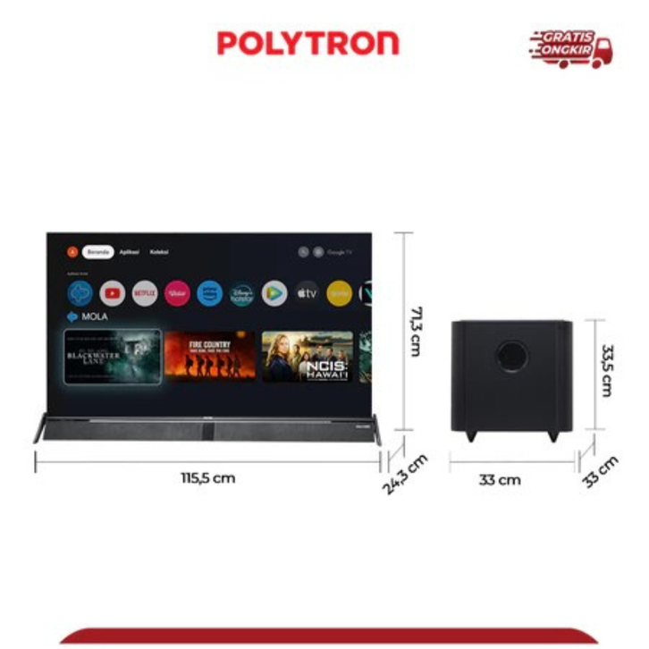 POLYTRON SMART CINEMAX SOUNDBAR GOOGLE TV 50 43 40 32 INCH 4K UHD DOLBY AUDIO VISION FRAMELESS USB HDMI SUPPORT DVB-T2