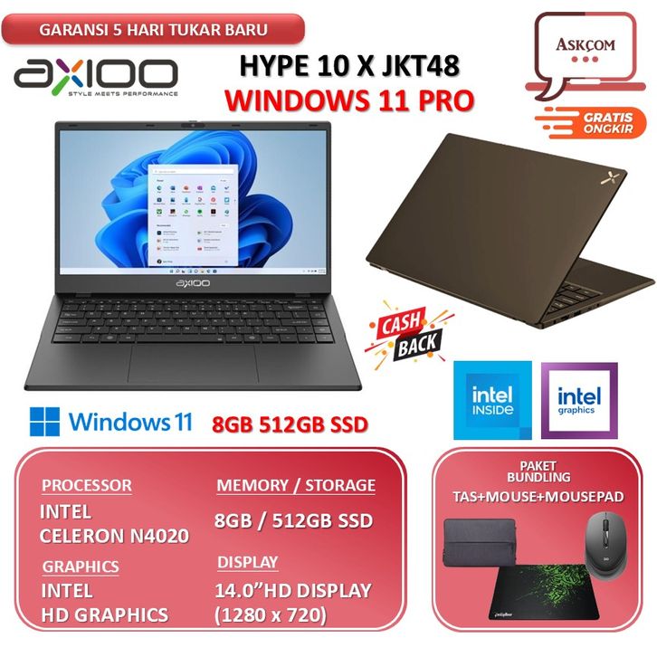 Laptop AXIOO Hype 10 X JKT48 Intel N4020U 8GB 512GB SSD 14.0inch Windows PRO X64 Original