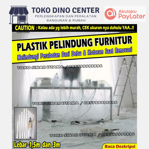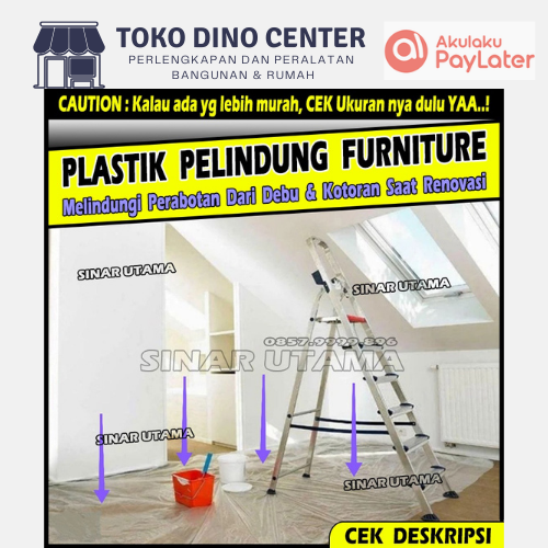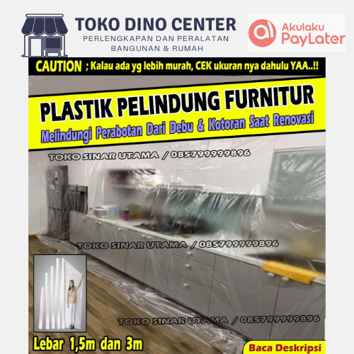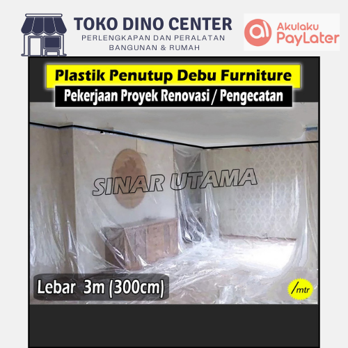 Plastik Proyek Anti Debu Renovasi Terpal Bening Penutup Lantai Plafon Gipsum Cat Tembok Besi Kayu Kuas Roll Meter