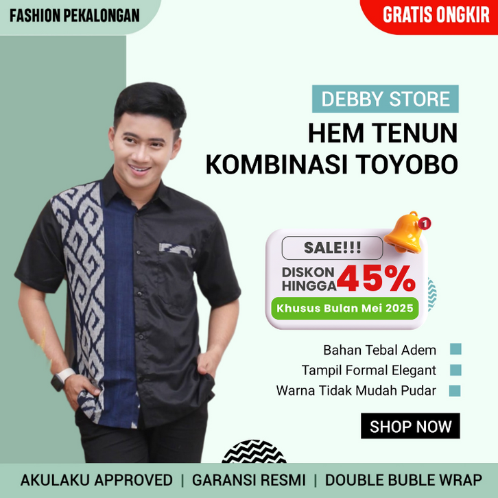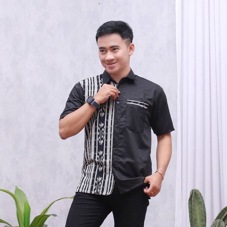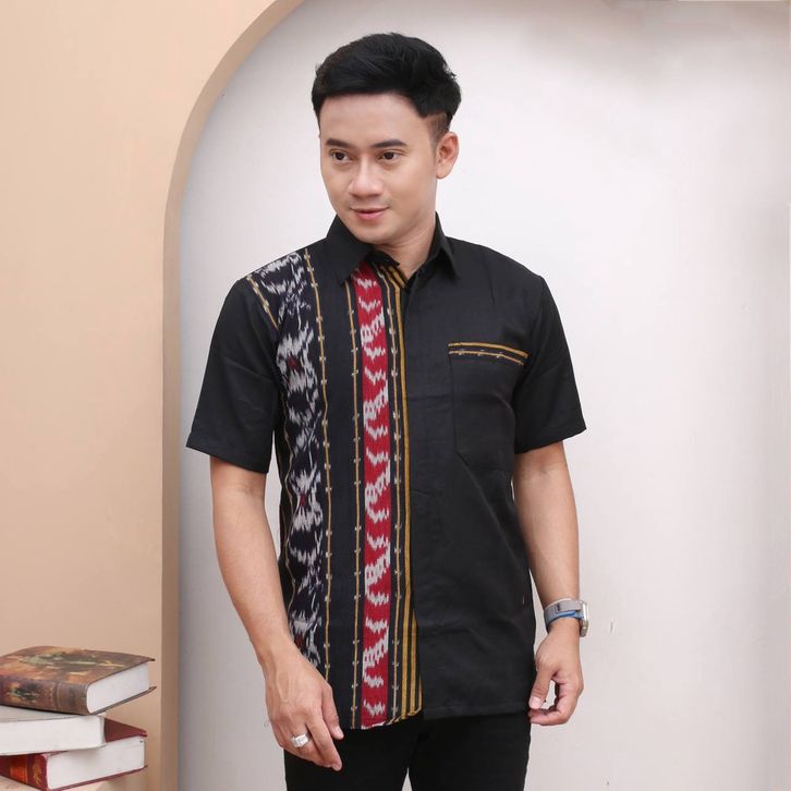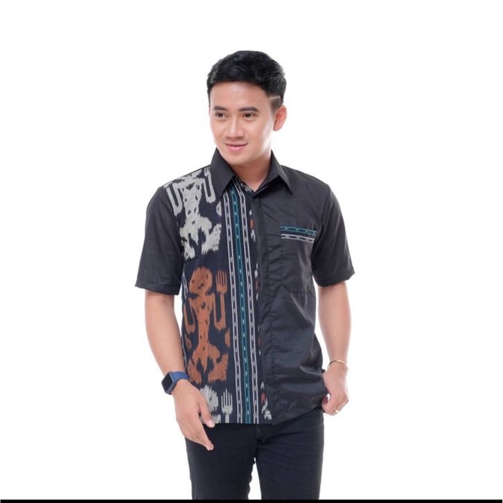Kemeja Tenun Cowok Hem Kombinasi Toyobo Atasan Cowo Tenun Motif Etnik Batik Laki Casual Formal Kondangan Lamaran