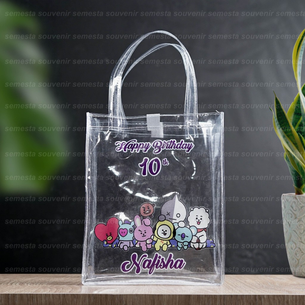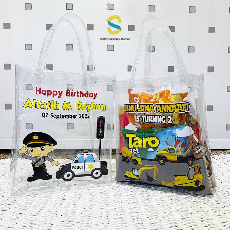 (50pcs) Custom Tas Mika Transparan Potrait Print UV Tas Ulang Tahun Souvenir Hampers Ultah Goody bag