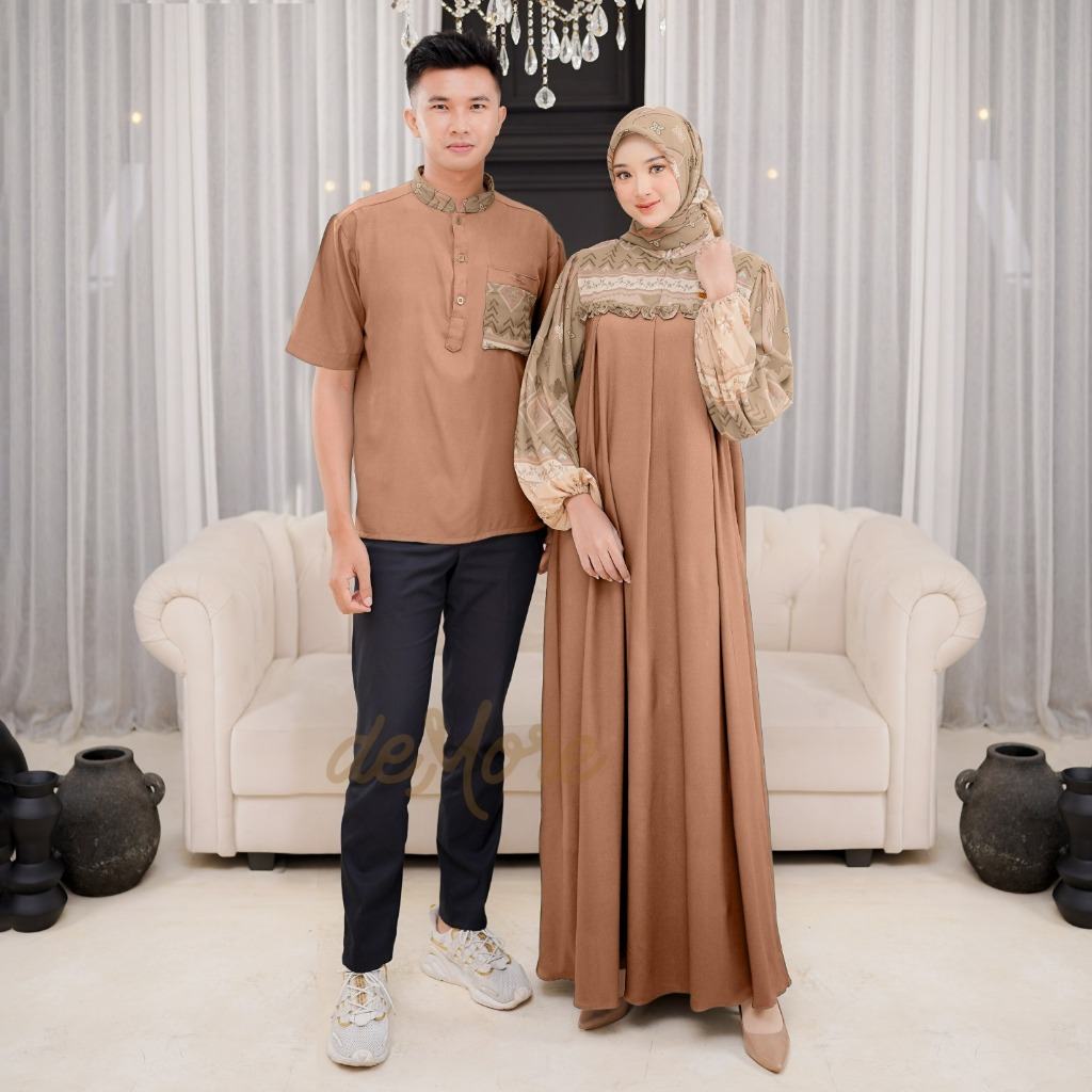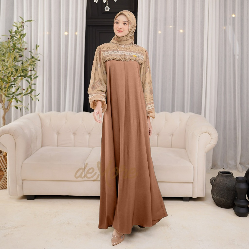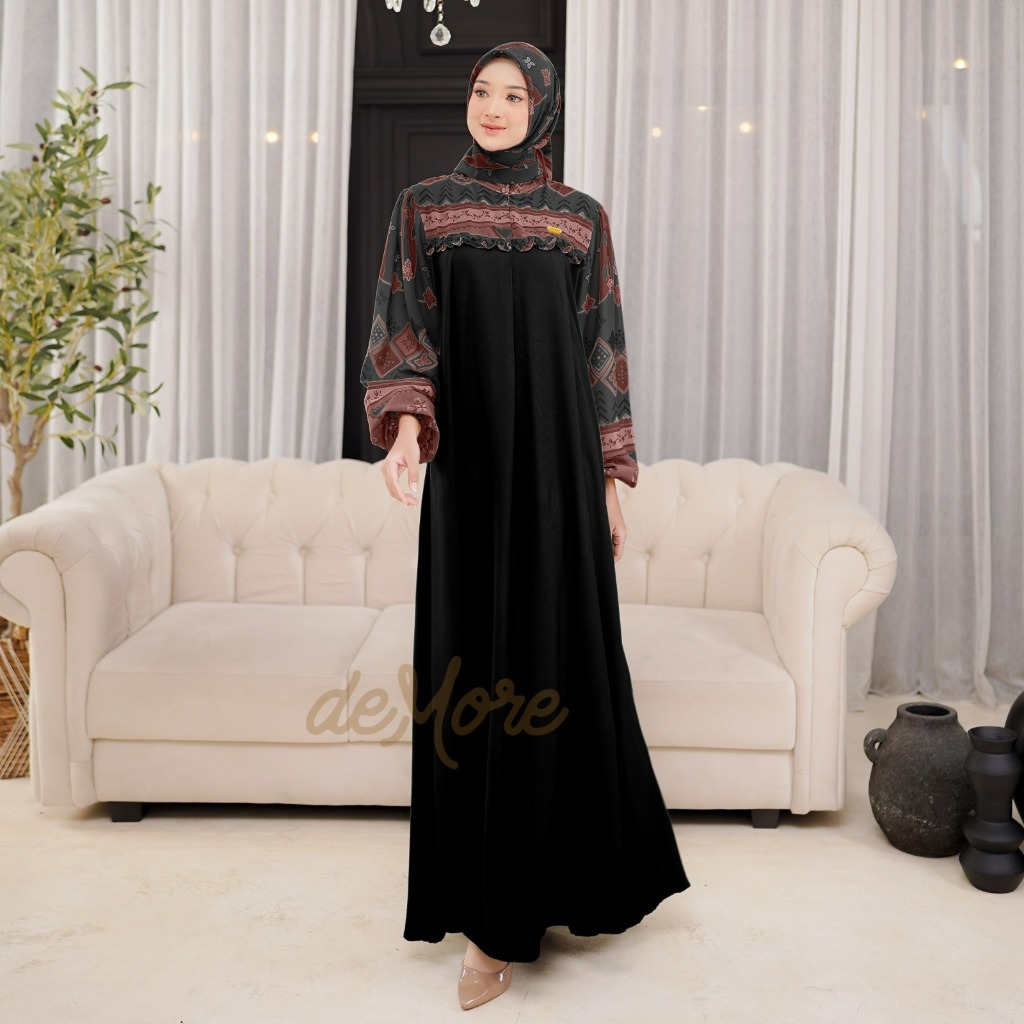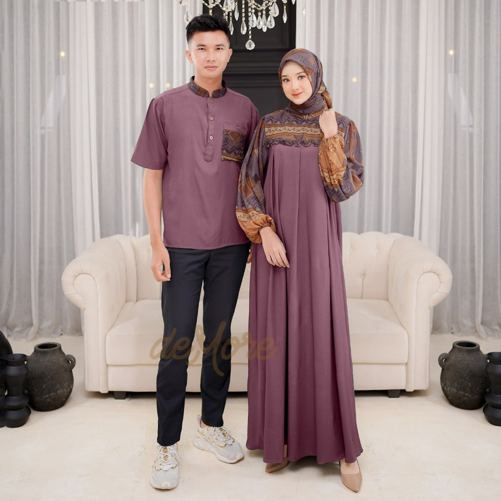 ELLENA GAMIS SET COUPLE FREE HIJAB SEGIEMPAT MOTIF ETHNIC MATT. TORINO GRADE A PREMIUM BY DEMORE