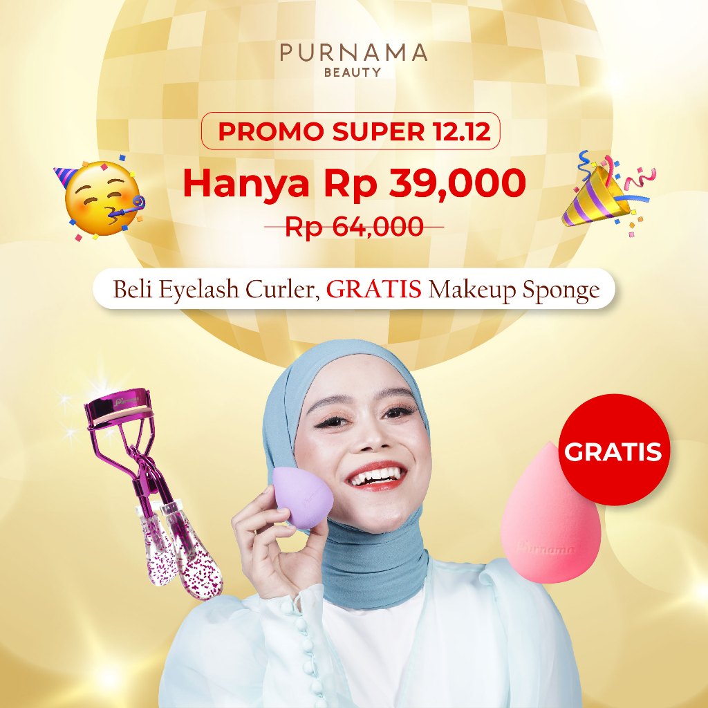 SALE PURNAMA BEAUTY GLAM EYELASH CURLER - JEPITAN BULU MATA/ PENJEPIT BULU MATA FREE MAKEUP SPONGE