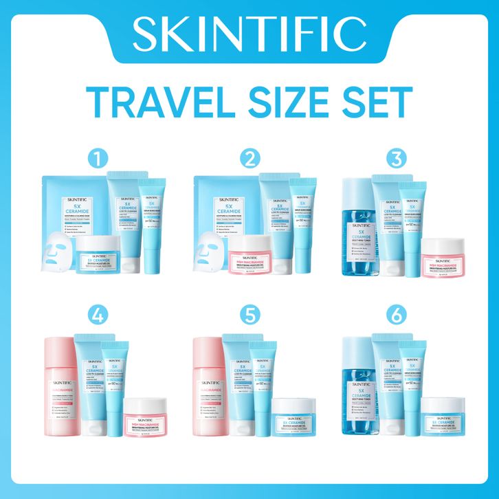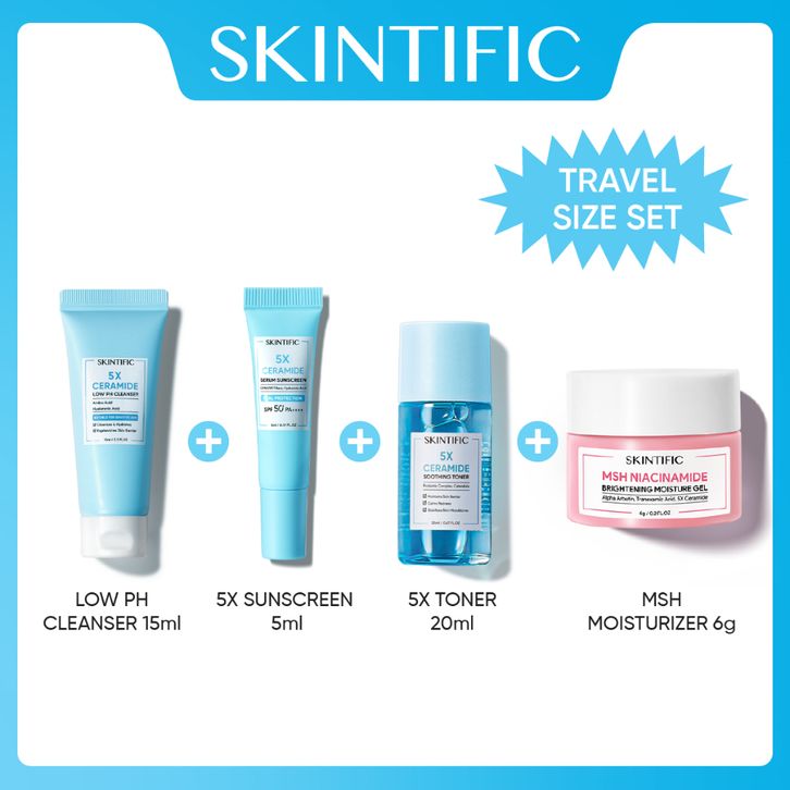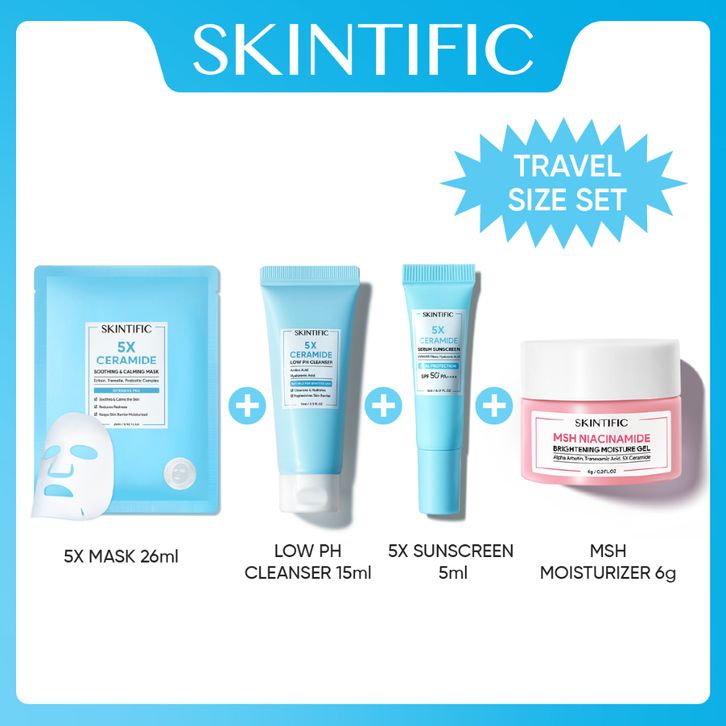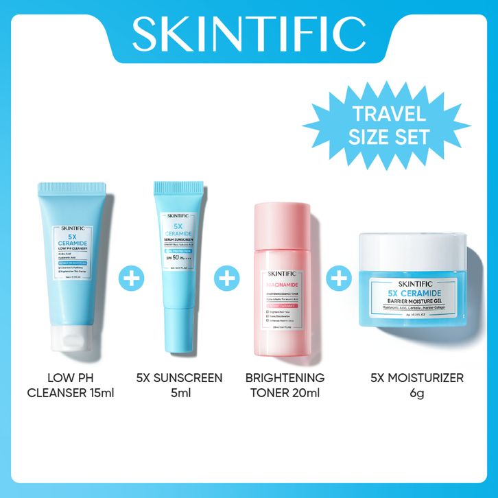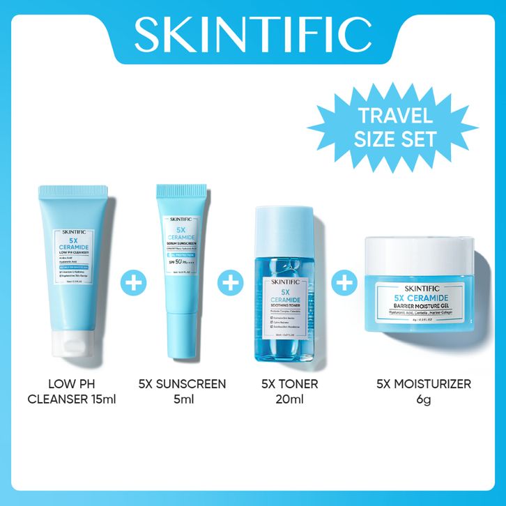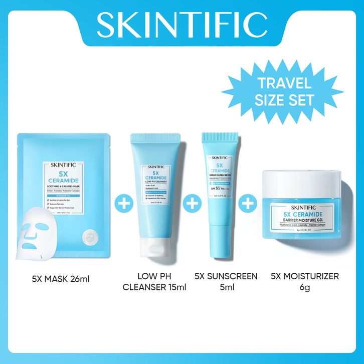 SKINTIFIC 5X Ceramide 4pcs Travel Kit Skincare Paket Moisturizer + Cleanser + Soothing toner + Serum Sunscreen Barrier S