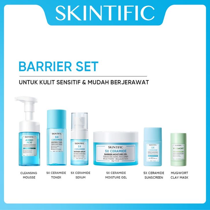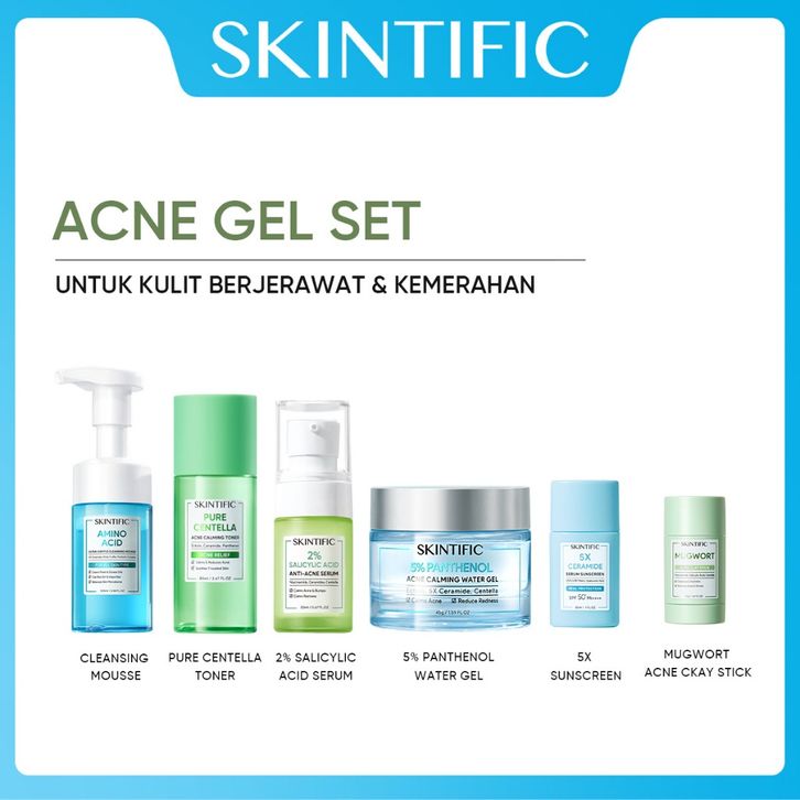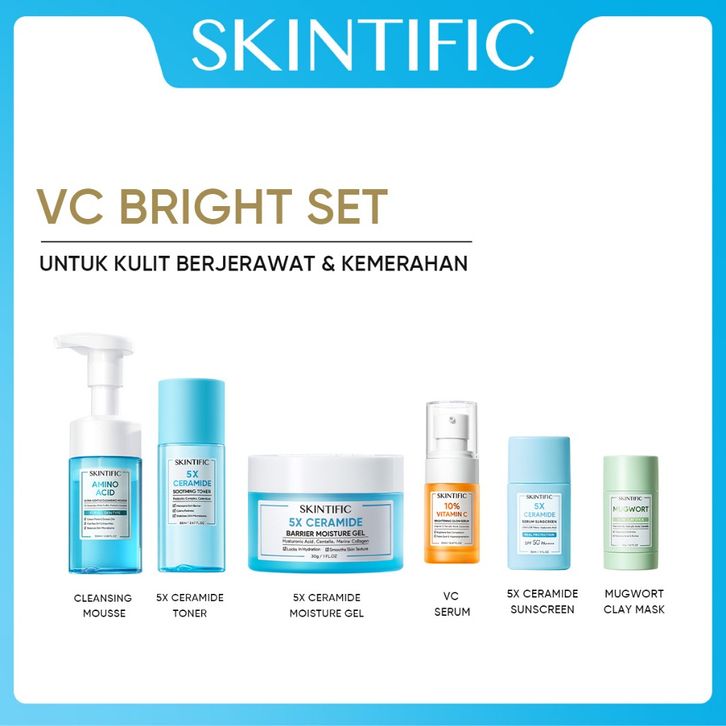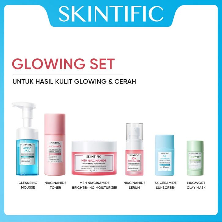 SKINTIFIC Paket 6pcs set moisturizer + Sunscreen + Serum + Clay Mask Stick + Facial Cleanser + Toner + Mask Bundle