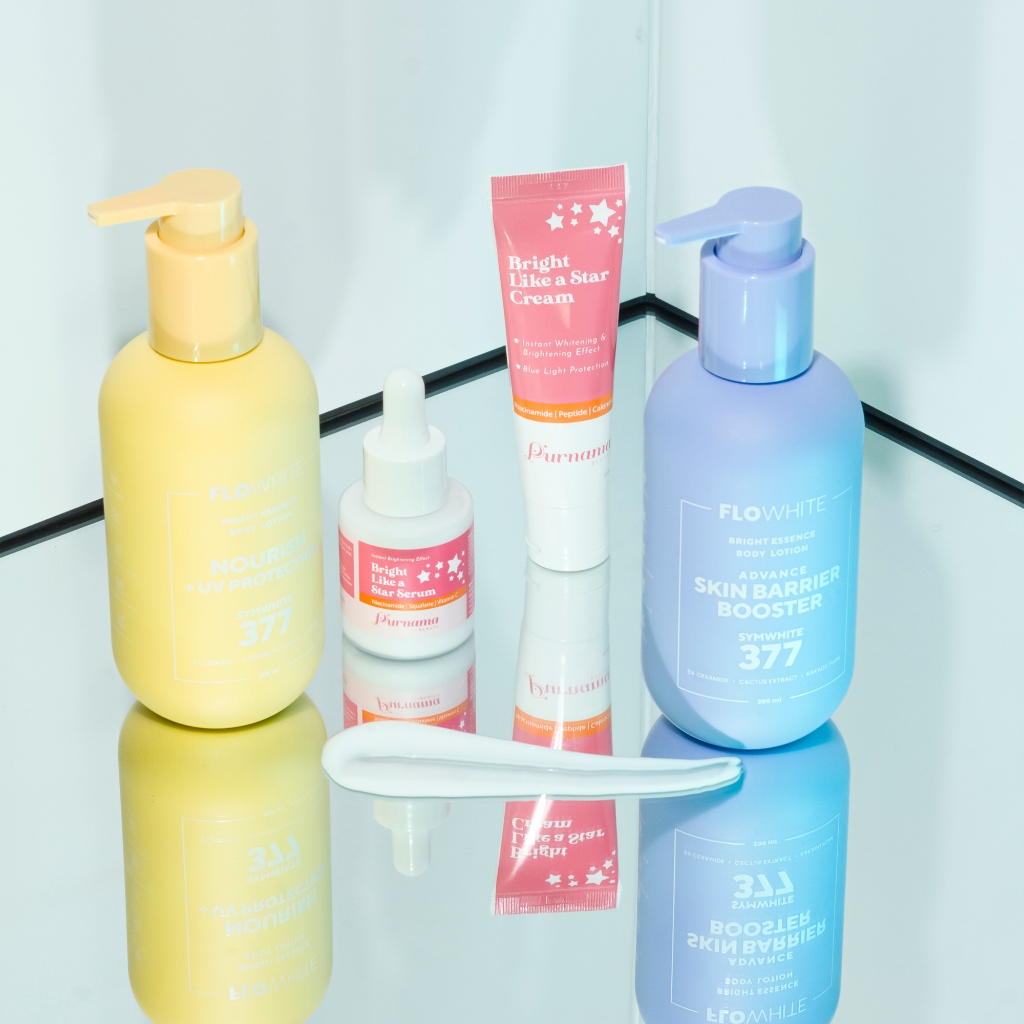 PURNAMA X FLOWHITE FLAWLESS PACKAGE PURNAMA BEAUTY BRIGHT LIKE A STAR SKIN CARE 1 SET (SERUM + CREAM)