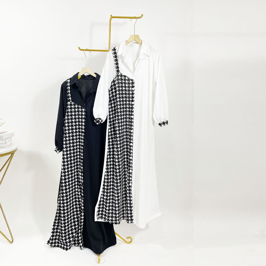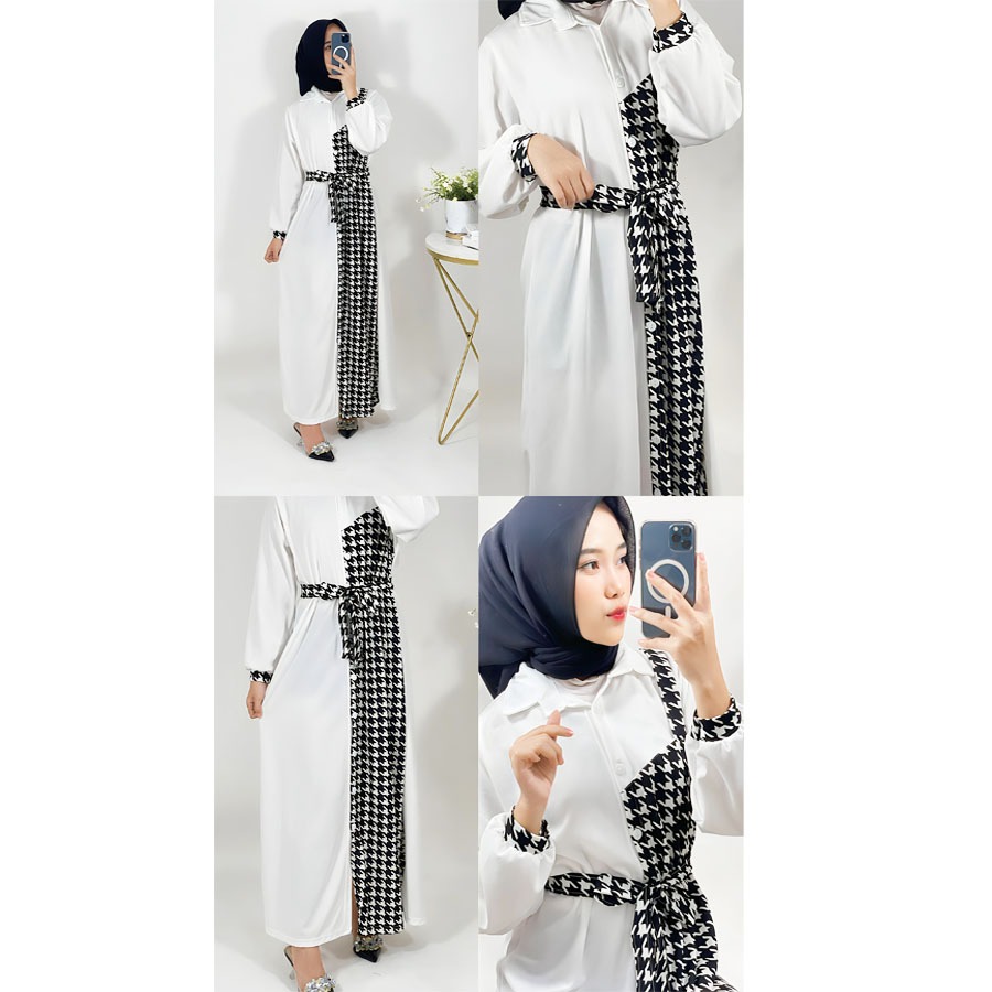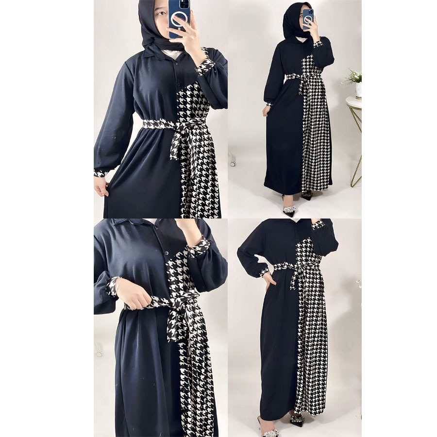 CARLINA - GAMIS MAHA HOUNDSTOOTH MIX DRESS MAXY KOMBINASI SYARI