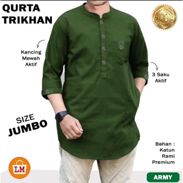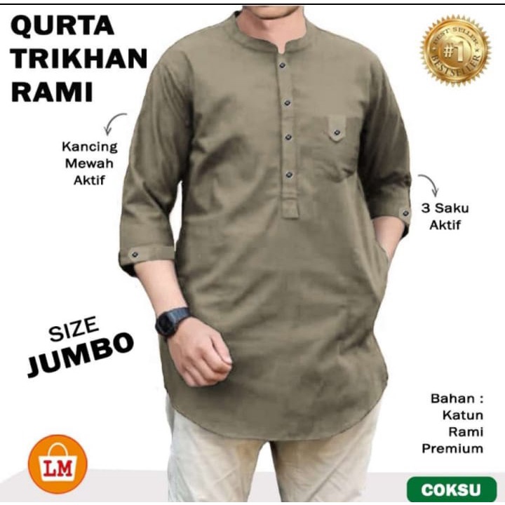 BAJU KOKO TRISHKAN / BAJU KOKO PRIA LENGAN PANJANG MUSLIM / QURTA RAJA PAKISTAN JUMBO