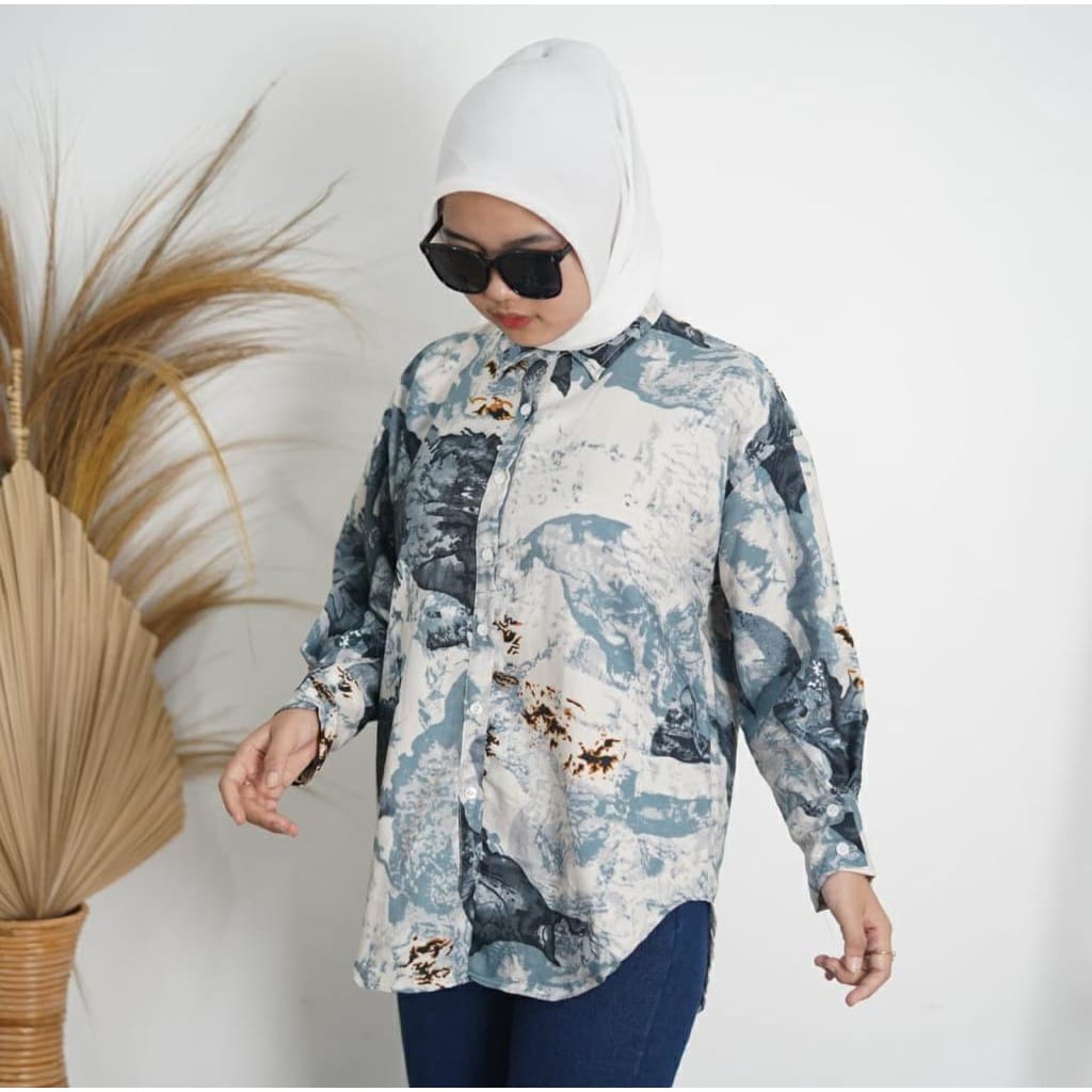 AFI - EC - OVERSIZE ABSTRAK KEMEJA MOTIF ICE PROMO TERMURAH TERLARIS