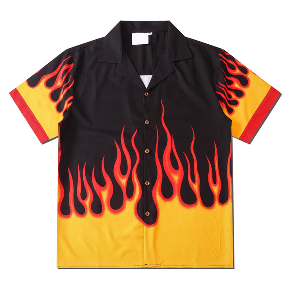DARK ICON KEMEJA PRIA GAYA VINTAGE MOTIF DARK ICON FLAME UNTUK MUSIM PANAS