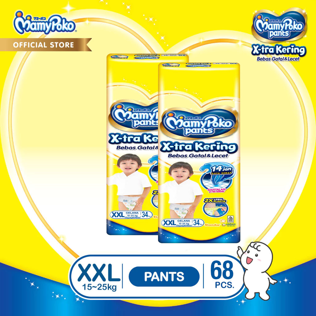 Paket 2 Packs MamyPoko Pants Xtra Kering S56/M48/L42/XL38/XXL34 Popok Bayi Celana x 2