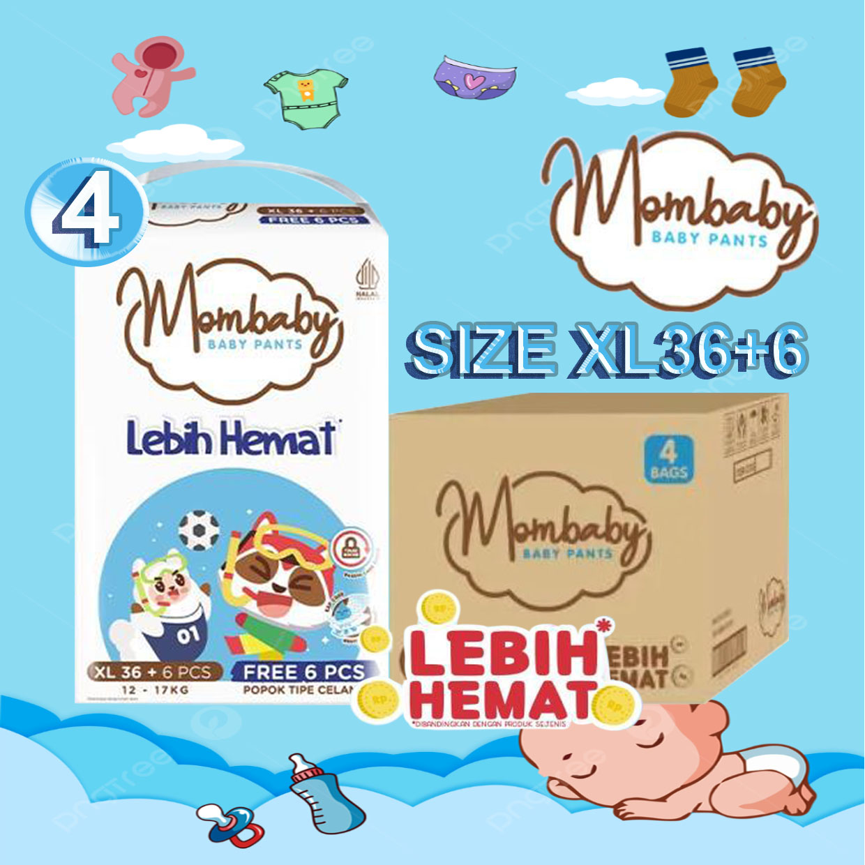 Paket 4 Ball MOMBABY S58+6 M54+6 L42+6 XL40+6 XXL32+6 1 KARTON Popok Celana