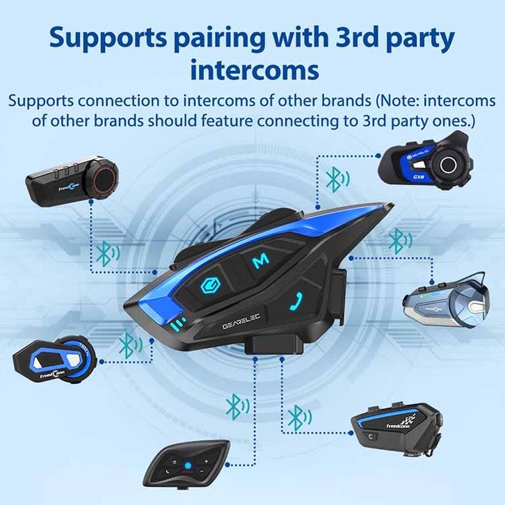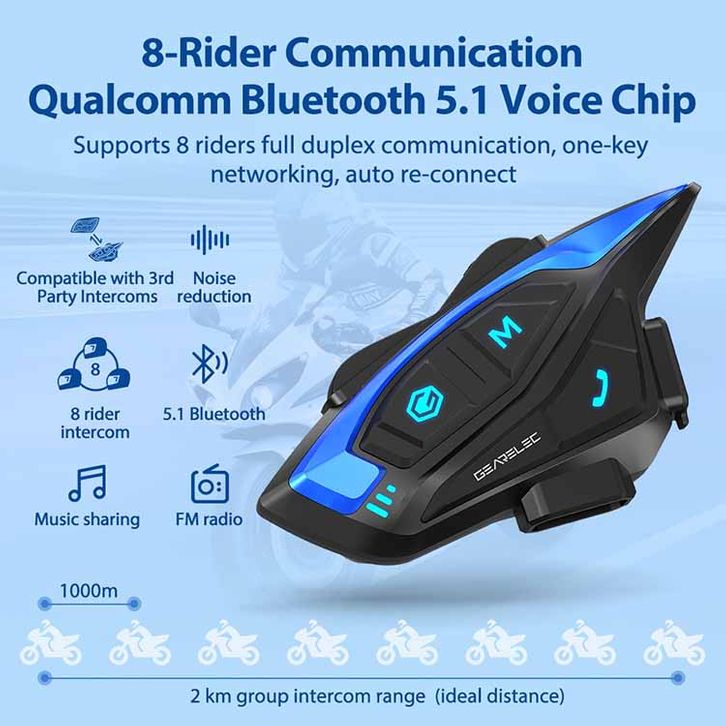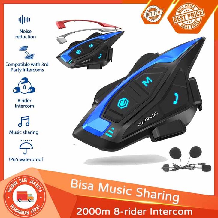 GEARELEC Shark Sepeda Motor Bluetooth Intercom Headset 2-8 Pengendara Helm Headset dengan Radio FM Termurah
