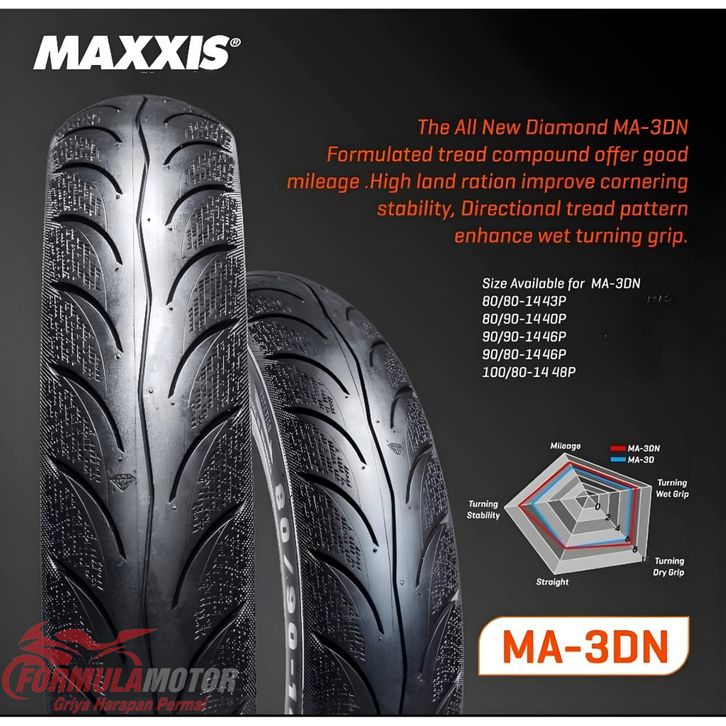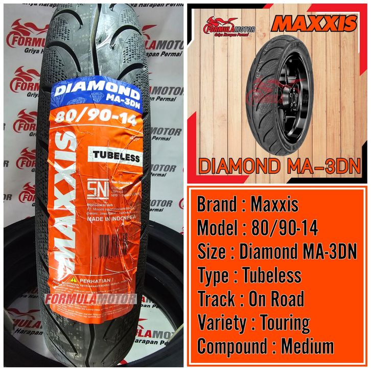 80/90-14 Ban Maxxis Diamond MA-3DN Ring 14 Tubeless (Touring Wet Grip) Ban Motor Mio, Xeon, Beat, Vario, Scoopy, Genio