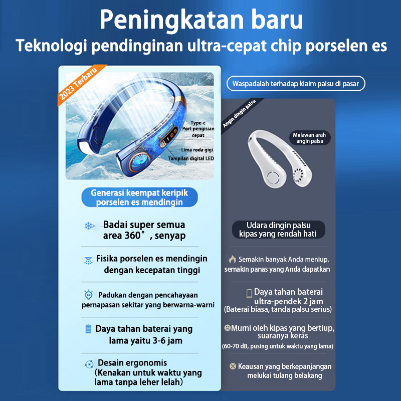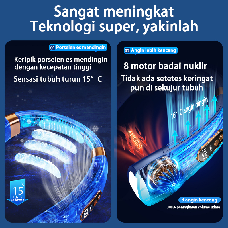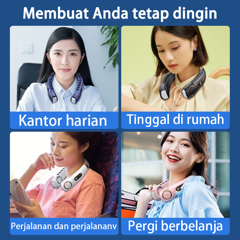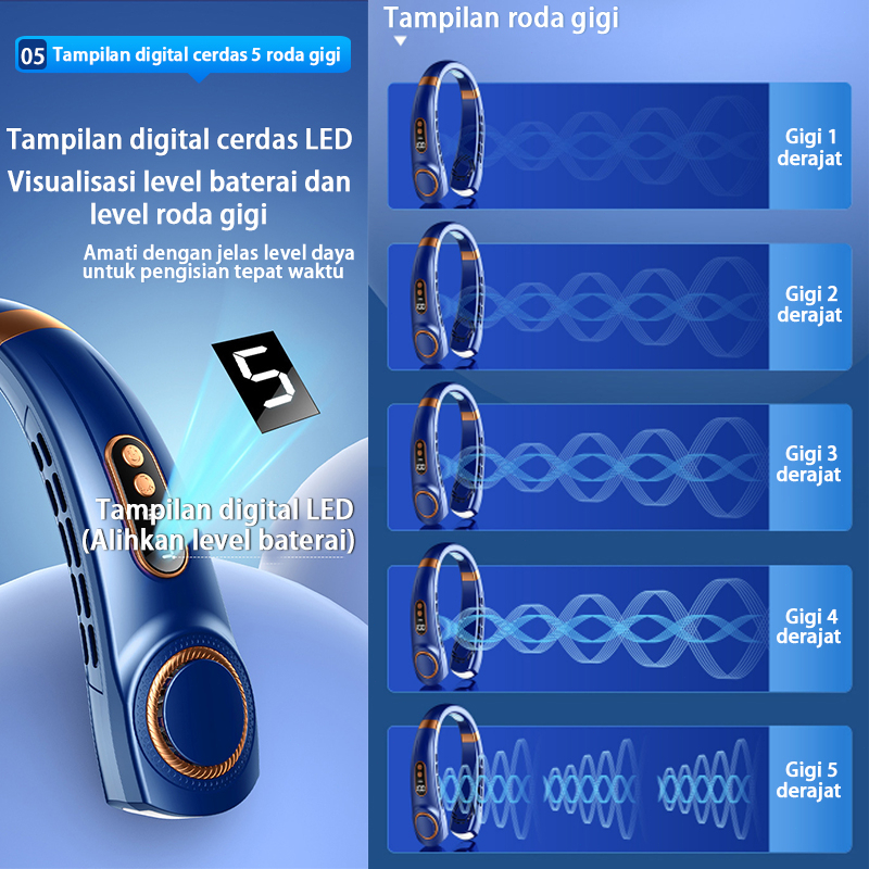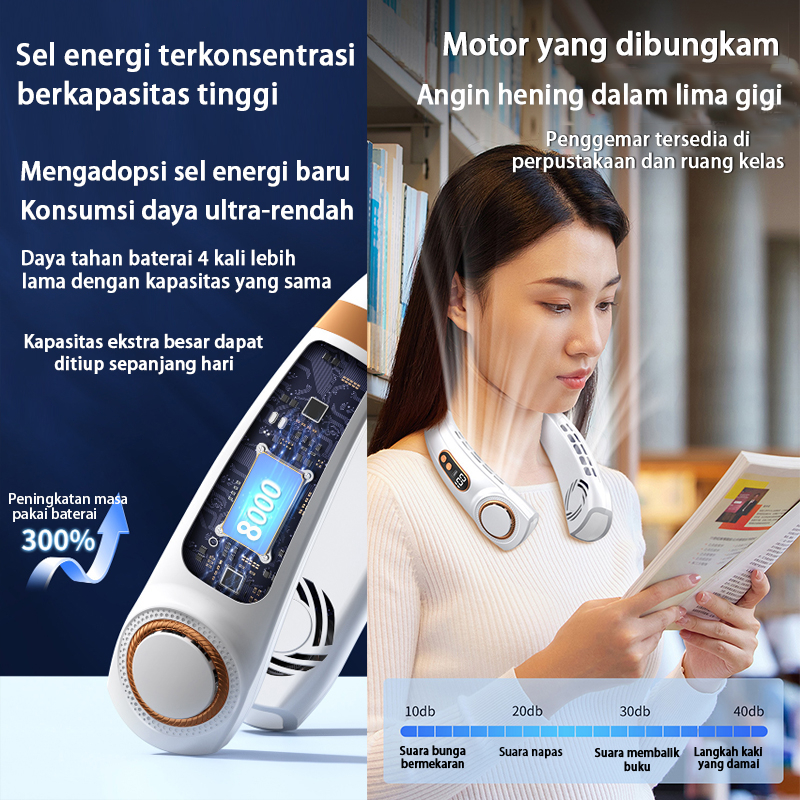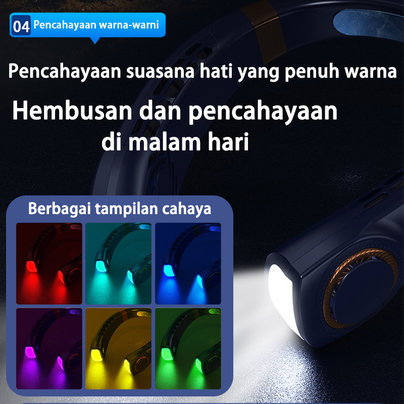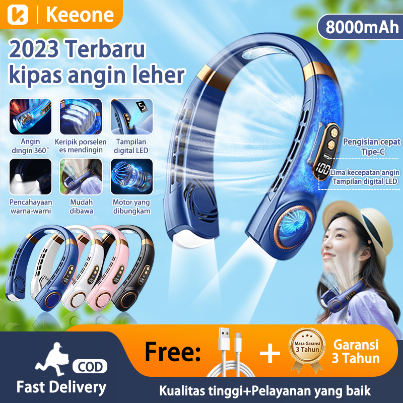 Keeone Kipas Angin Gantung Leher Portable USB 8000Mah 5-Speed Wind Tanpa Baling Baling Neck Fan / LED Display / Pencahay