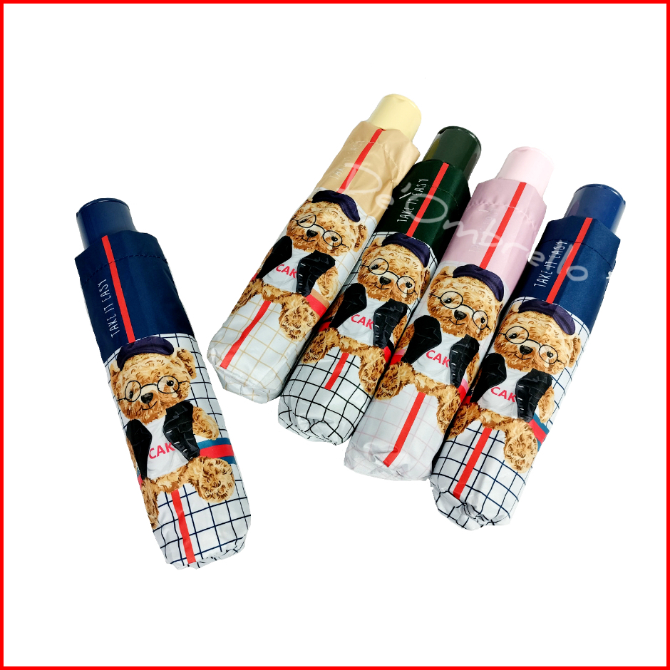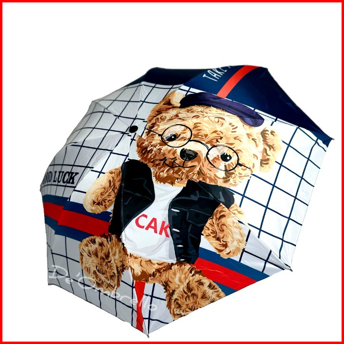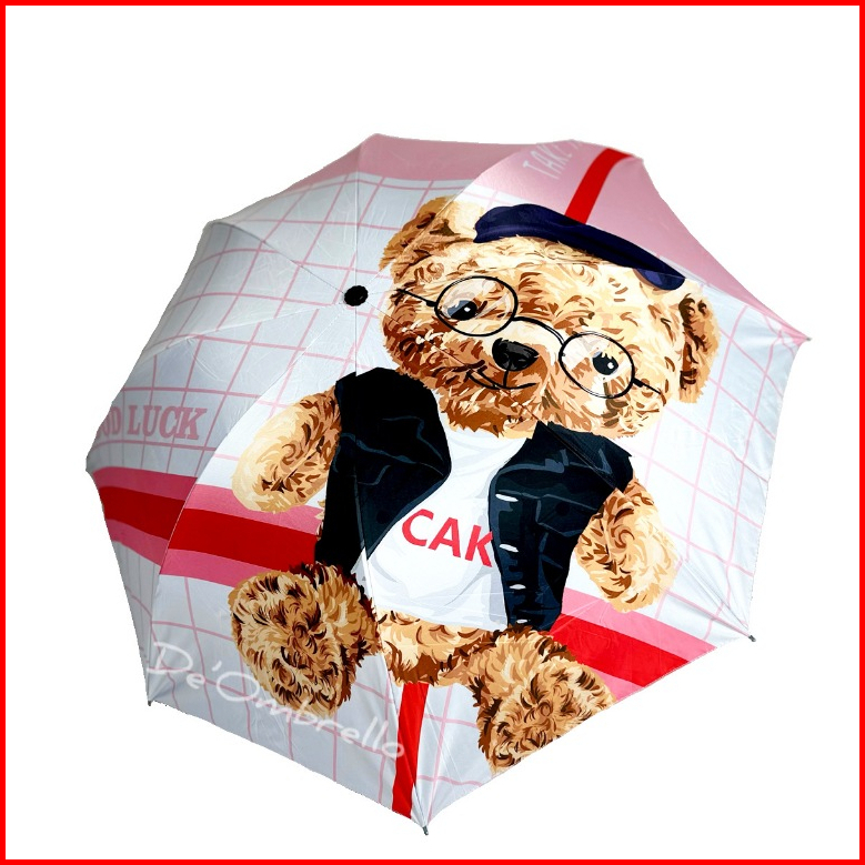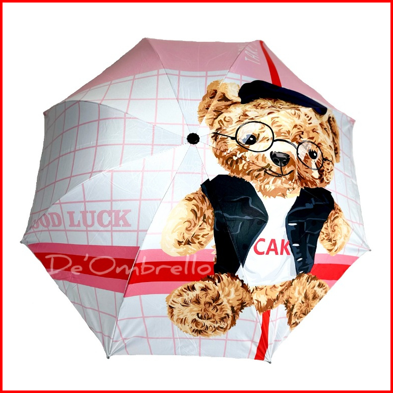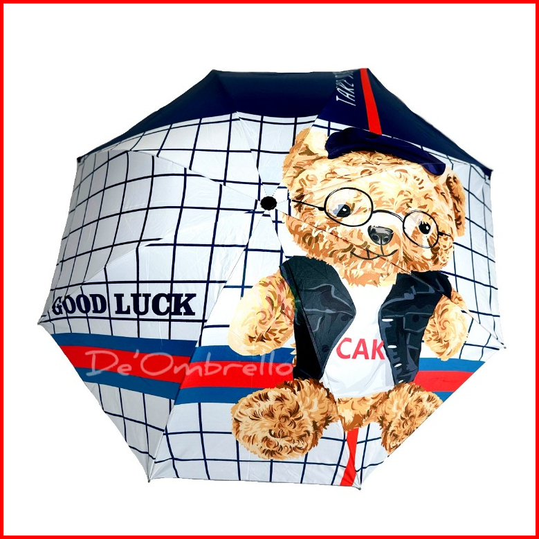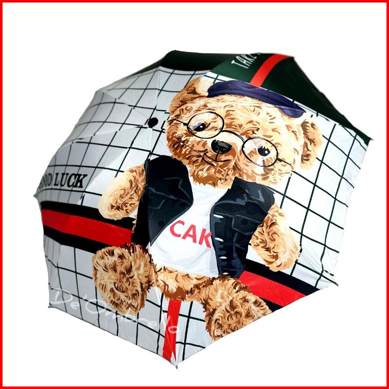 533 Payung Lipat 4 Fancy Anti Uv Motif Good Luck Bear Dalam Hitam Payung Fancy Payung Lipat