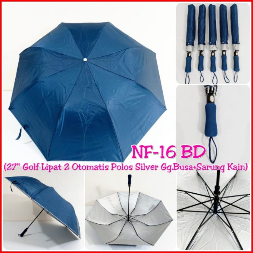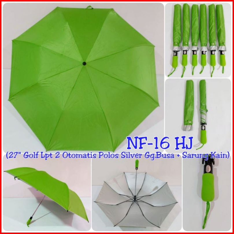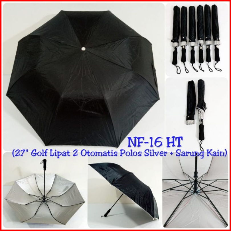 Payung Golf Otomatis Lipat 2 Jumbo Polos Dalam Silver