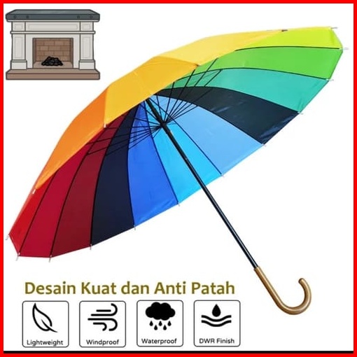 Payung Pelangi 16 Jari Rainbow Umbrella Jumbo - Payung Golf Besar