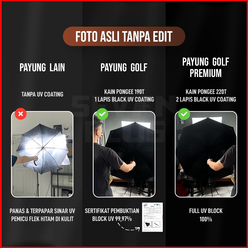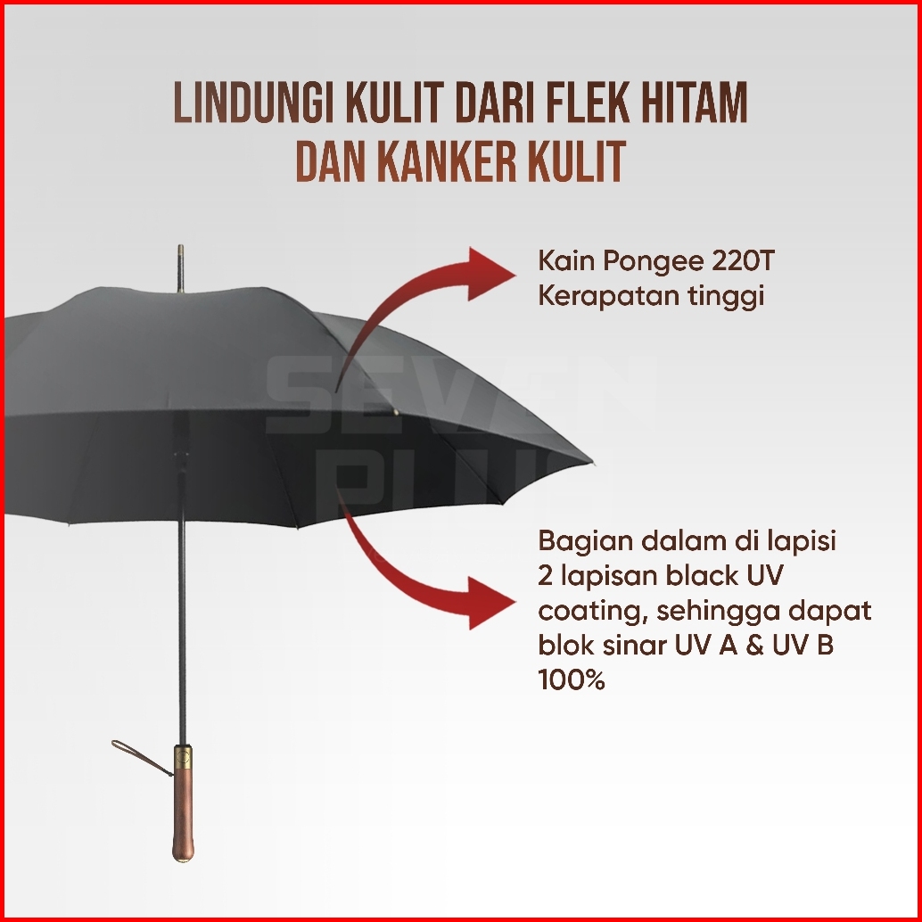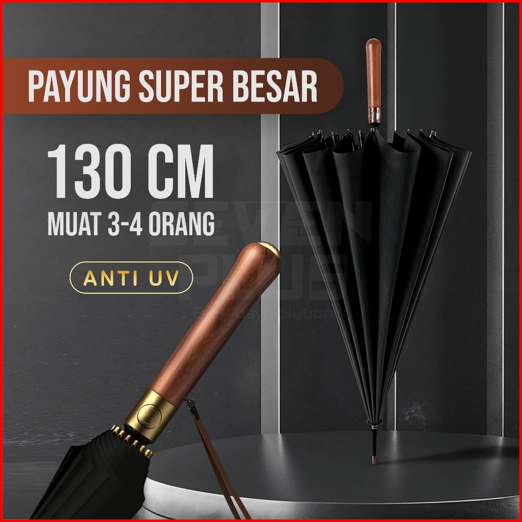 Sevenplus Payung Golf Premium Quality 220t Full Uv Block Wood Handle -payung Jumbo Diameter 130cm Premium Anti Uv Protec