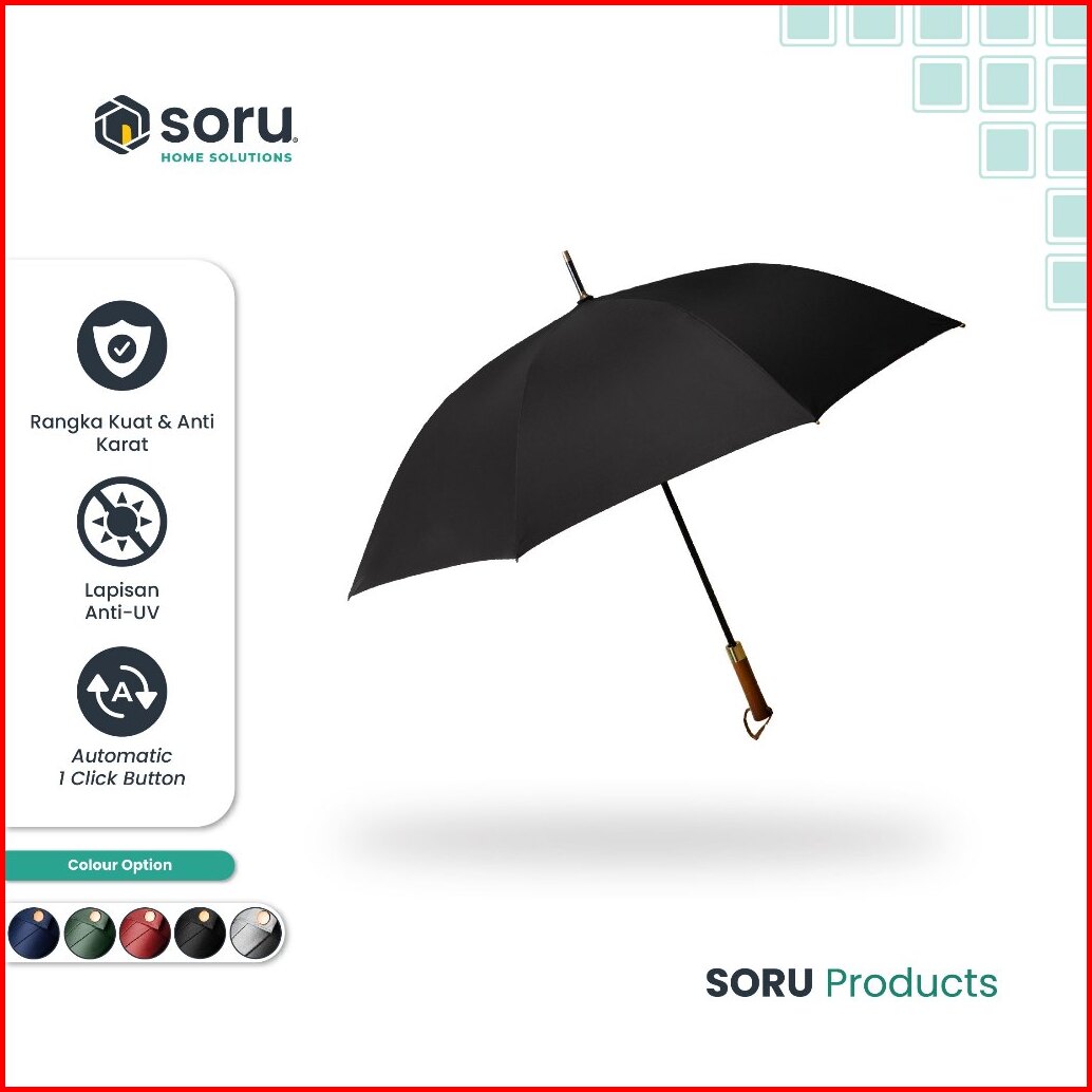 Soru - Payung Golf Besar Jumbo Otomatis Premium - Golf Umbrella Automatic Handle Kayu