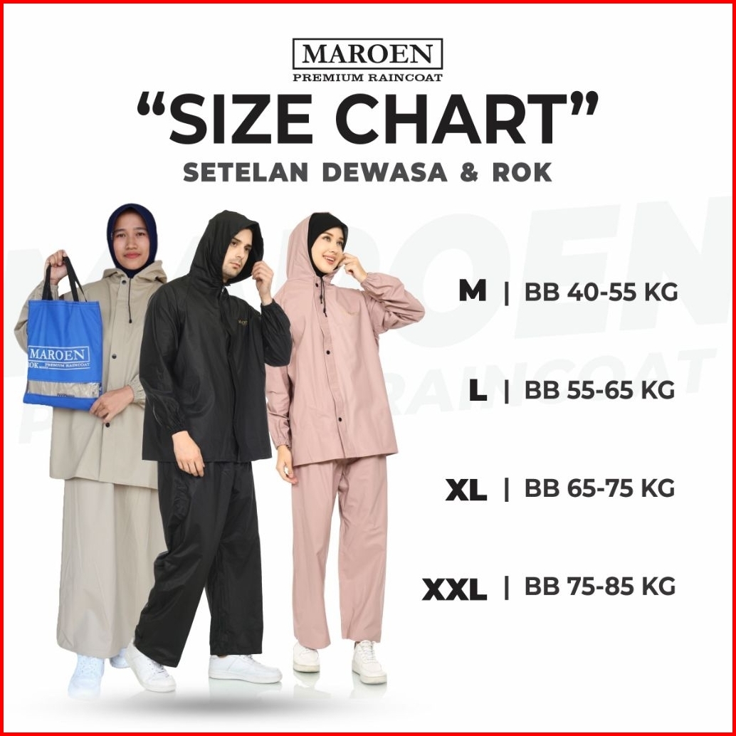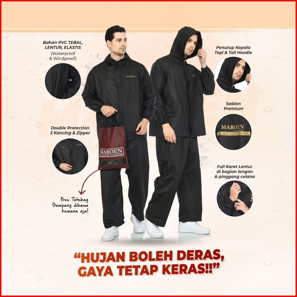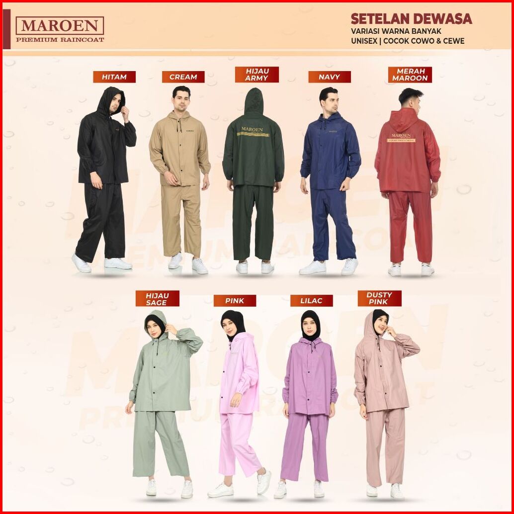 Raincoat Jas Hujan Setelan Pria Wanita By Maroen Bahan Pvc 0.25 Tebal Lentur Anti Rembes Berkualitas