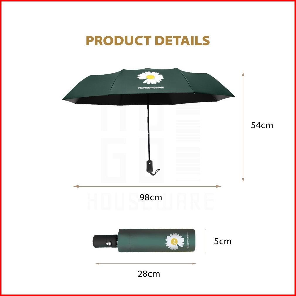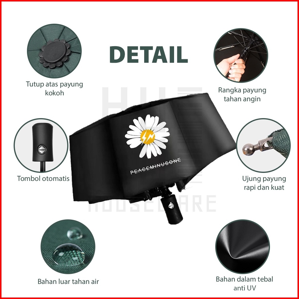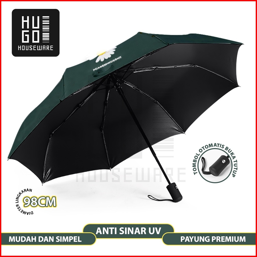 Payung Lipat Otomatis Buka Tutup Motif Daisy Anti Uv Protection Rangka Fiberglass Anti Patah Premium Quality Hugo
