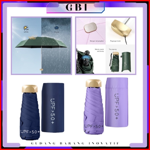 Gbi Payung Lipat Anti Uv Upf 50 Motif Polos Payung Tabir Surya Hujan Atau Panas Free Pouch Payung Folding Umbrella Ultra