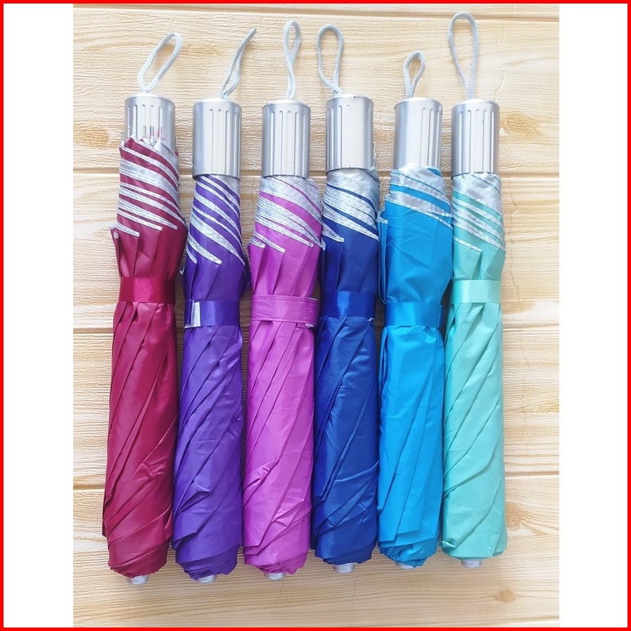 Joy Ktb Payung Lipat 102 Warna Polos Umbrella Anti Uv 2 Warna Lapis Silver Hujan Warna Warni